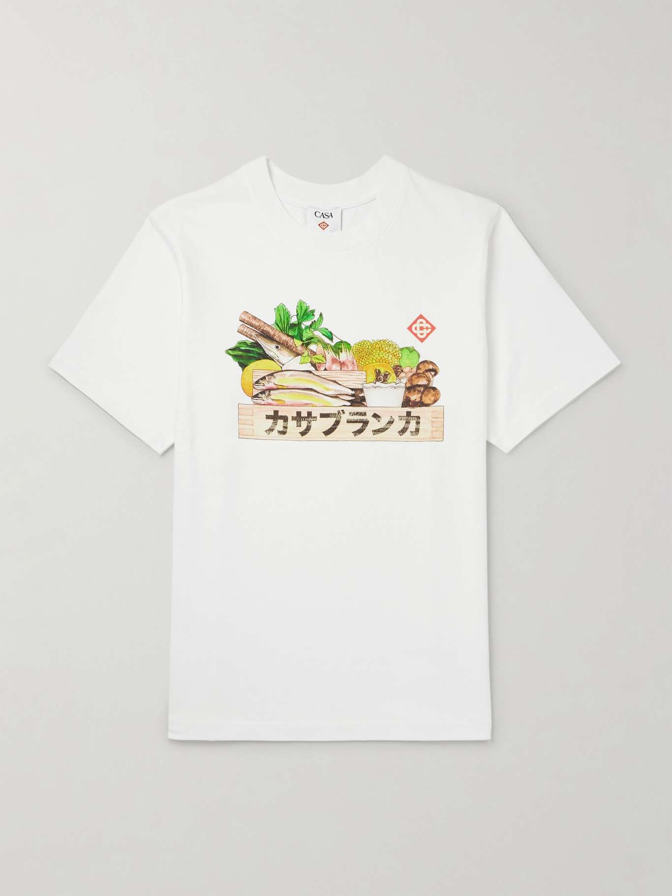 Casablanca's T-shirt's inspired by traditional Japanese reverence for food with its wholesome graphic. It's made from organic cotton-jersey and spells out the brand name in katakana.