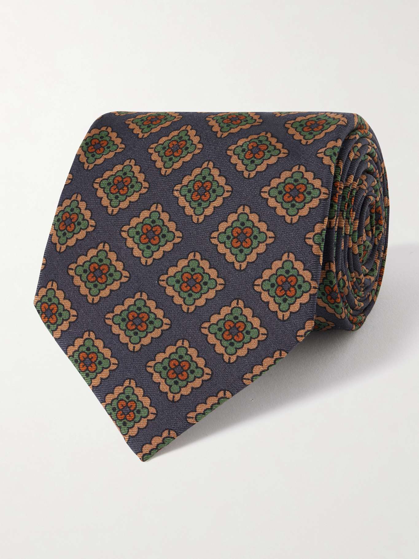 Printed accessories were the first items crafted when Drake’s launched in 1977, and they remain a core part of the brand’s identity. This wool and silk-blend twill tie has been made in the UK and features a floral medallion motif.