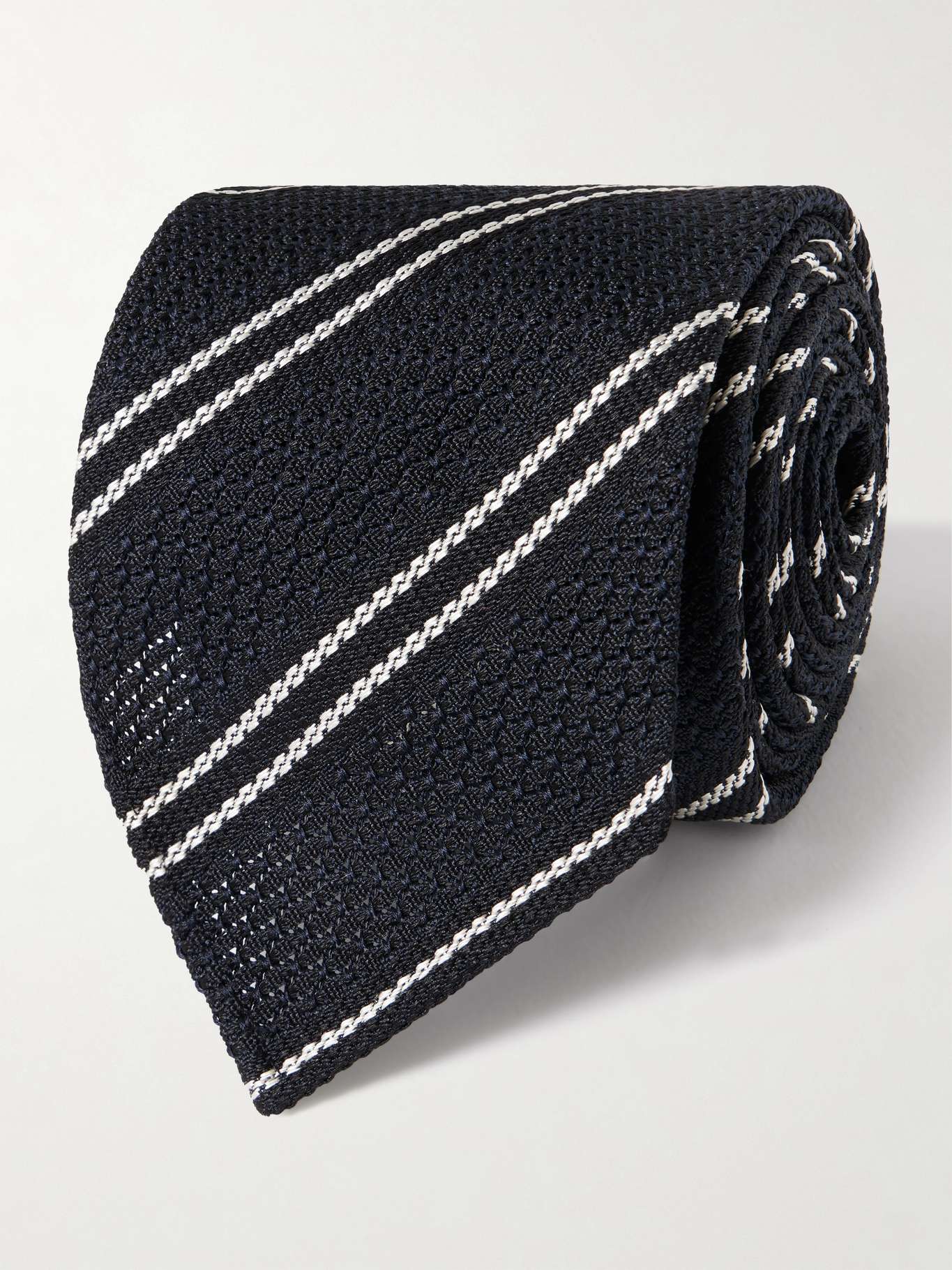 "At Drake's, we're proud of the fact that our ties are still made by hand, the traditional way", says the brand. This version is made from textured-silk with contrasting black and white stripes and is left unlined for a more casual look.