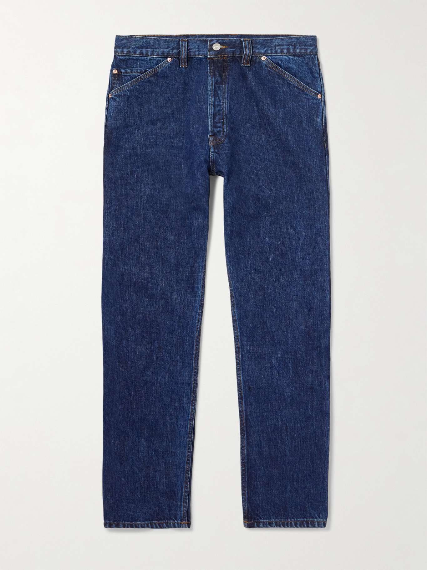 The selvedge denim used to make Drake's jeans is specially sourced from Japan where it's woven on an extremely rare shuttle loom and dyed using natural indigo to achieve a wash that'll age uniquely. They're cut straight and subtly tapered towards the hem, then finished with copper rivets, just like classic workwear styles.
