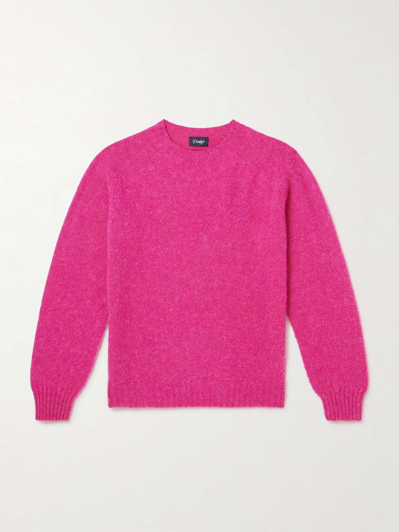 Drake's utilises expert knitters in the Scottish borders to make its sweaters. Intended for a relaxed fit enhanced with raglan sleeves, it's crafted from local Shetland wool, brushed to achieve a softer handle and shaggy texture. Ribbed trims smarten up the way it sits.