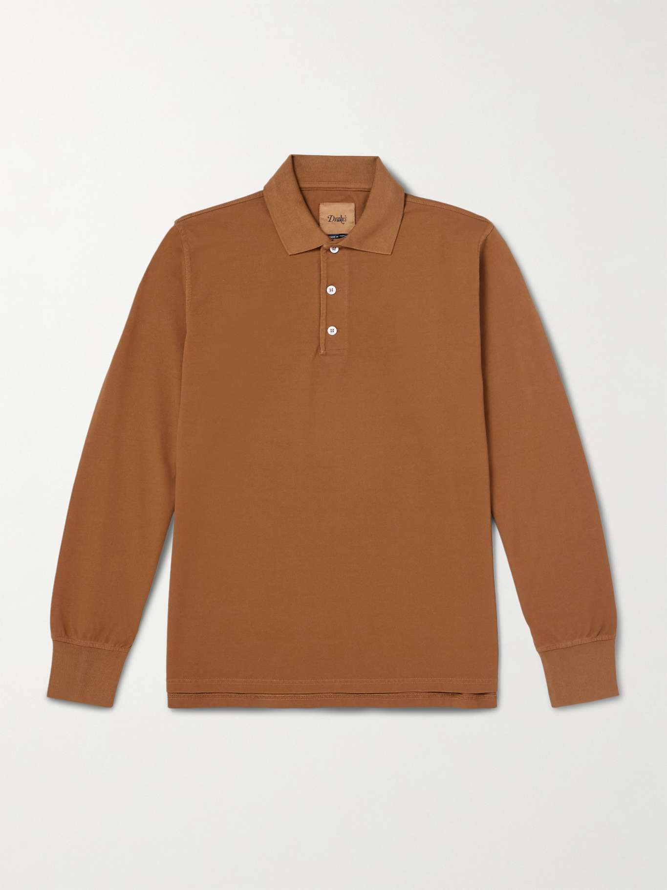 As Drake's rightly points out, the polo shirt is "one of the most versatile pieces a man can own, pulling its weight in casual and dressy situations alike". A sound investment, this one is cut from breathable cotton-piqué with a ribbed collar and stepped hem. The placket fastens with a duo of glossy mother-of-pearl buttons.