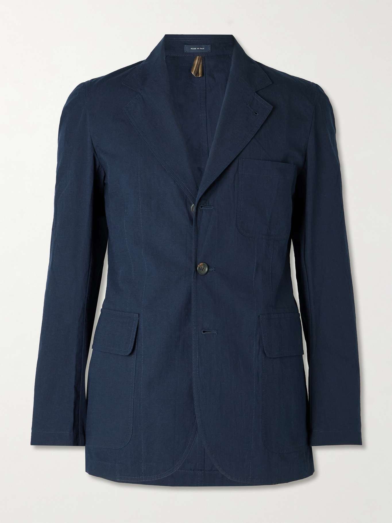Drake's 'Mk. I Games' blazer draws inspiration from workwear as much as classic tailoring with its boxy shape, assortment of patch pockets, generous sleeves and relaxed 3-roll-2 button fastenings. It's cut from yarn-dyed Japanese cotton-ripstop and left unlined to keep it lightweight. Complete the set with the coordinating trousers in our edit.