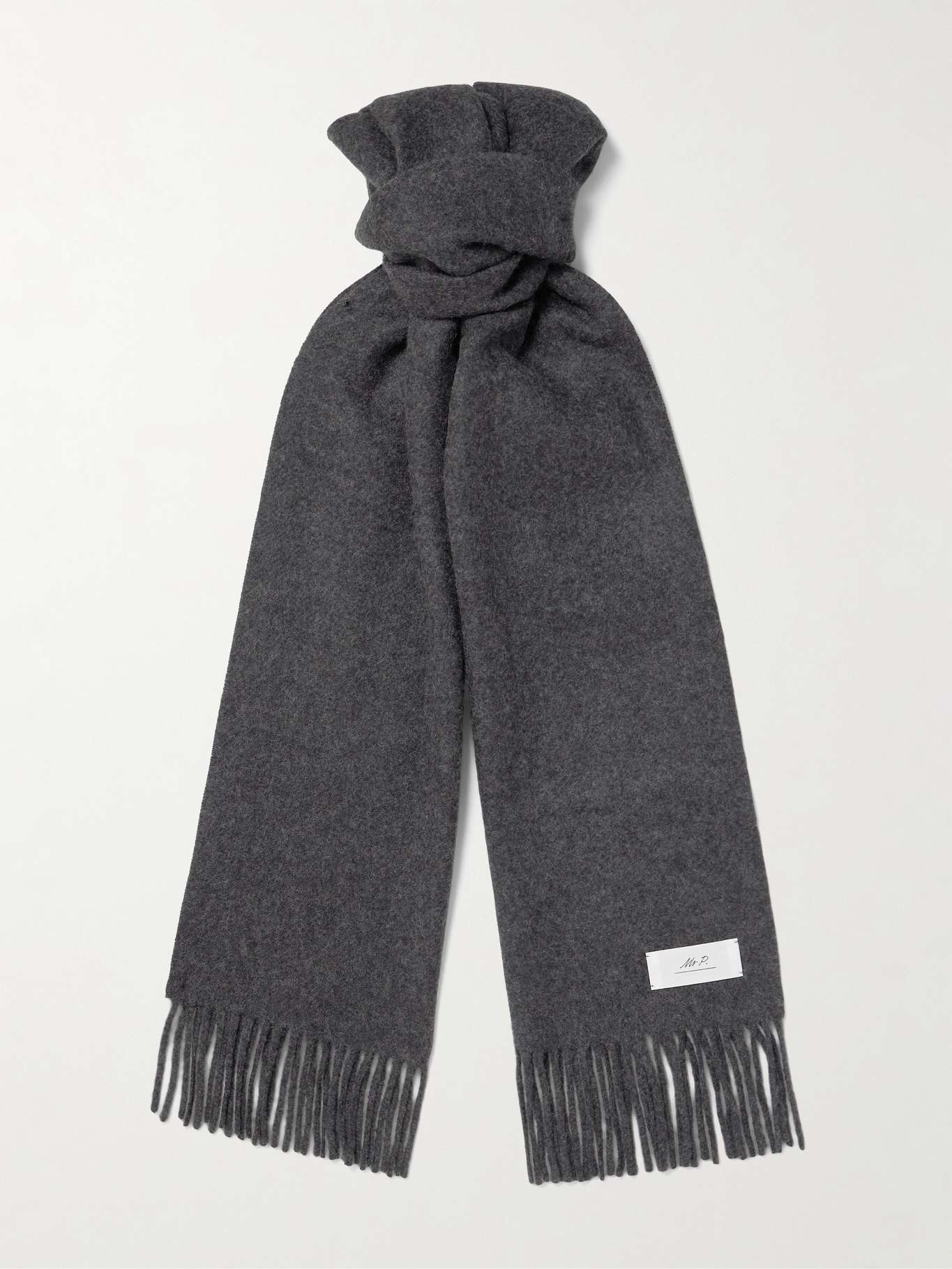 DESIGNED BY MR PORTER. Mr P.'s scarf is woven, so it feels a tad smarter than knitted styles. It's made from premium charcoal cashmere and finished with fringing for subtle texture.