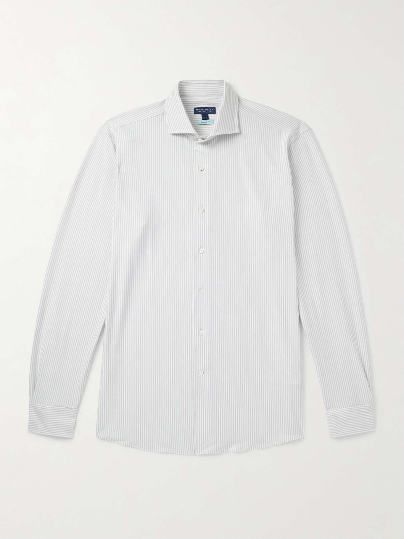 Peter Millar's 'Excursionist' shirt is made from a cotton-blend that sits between a knit and an Oxford. It's cut for a close fit and tailored with a cutaway collar and mother-of-pearl buttons.