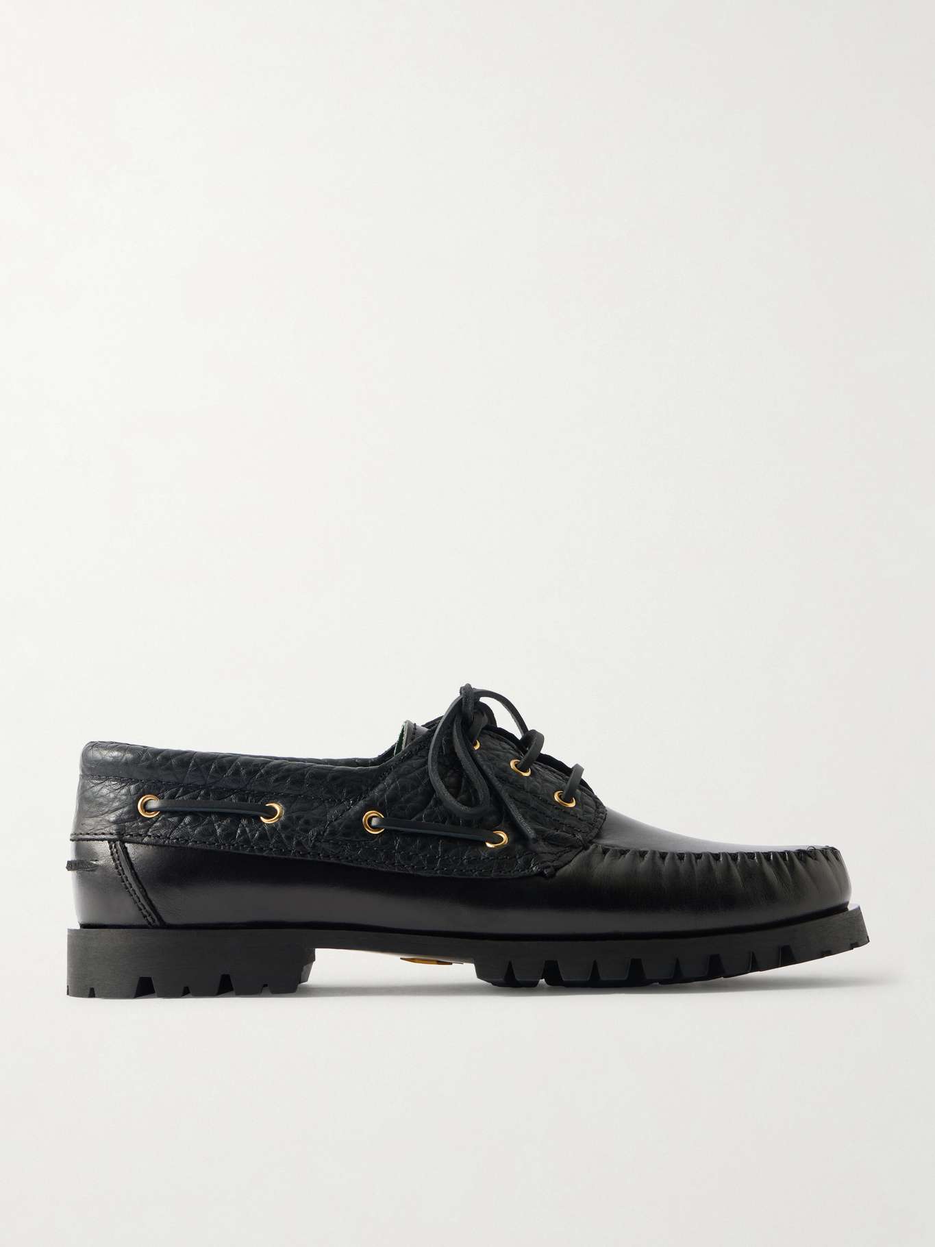 VINNY's 'Aztec' boat shoes are handcrafted with premium, hand-stitched leather uppers that are threaded with laces. They're set on sturdy Vibram rubber-lug soles for durability and grip.