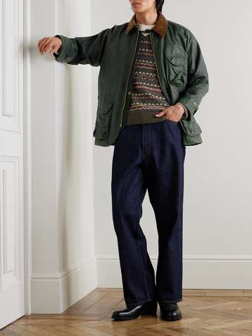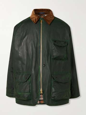 Corduroy-Trimmed Waxed-Cotton Jacket