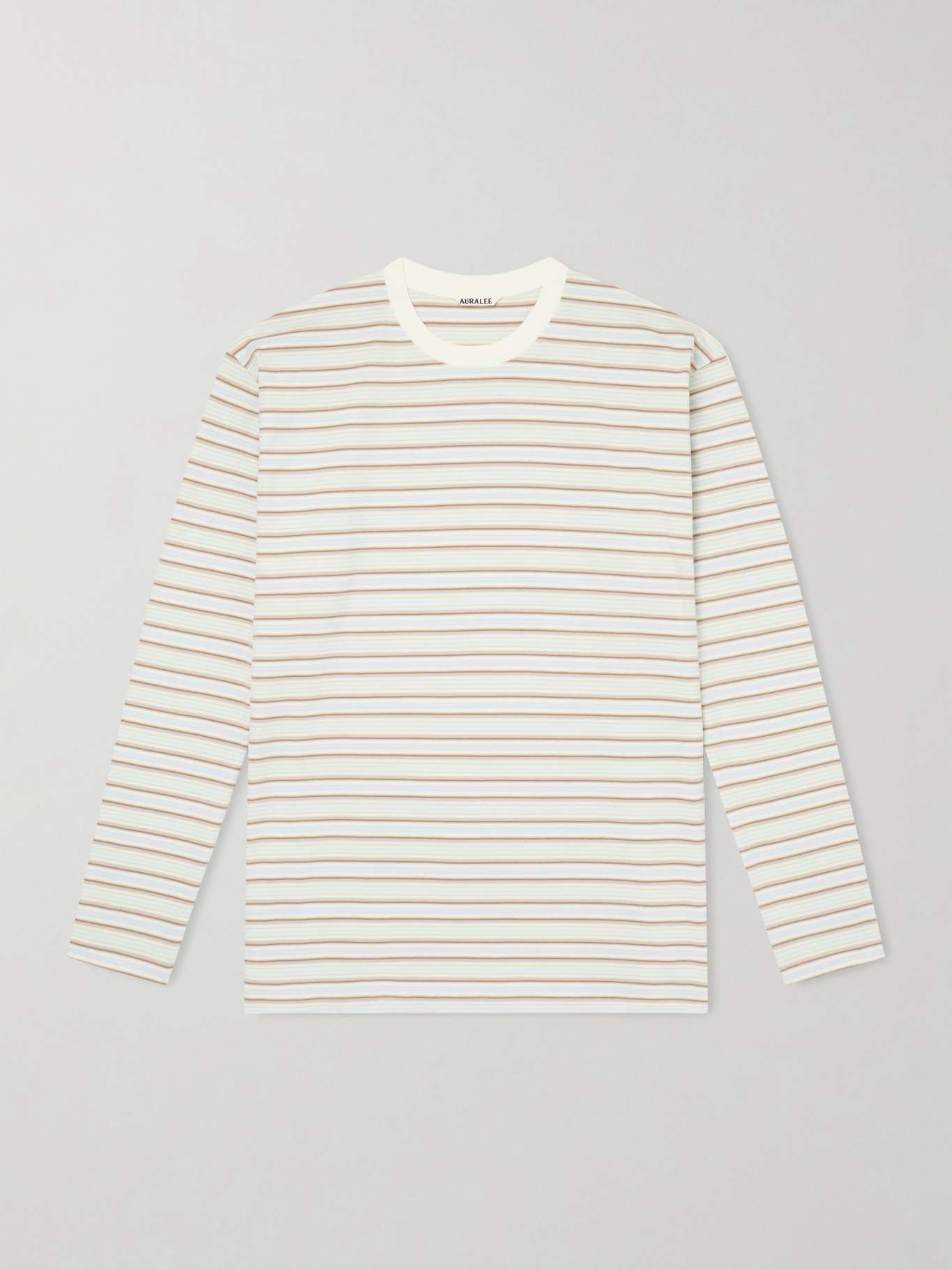 Auralee’s striped long-sleeve T-shirt is made from cotton-jersey knitted with 23 different colours to create a soft, nuanced palette. It’s shaped with a ribbed crew neckline and slightly dropped shoulders that lend the profile a relaxed drape.
