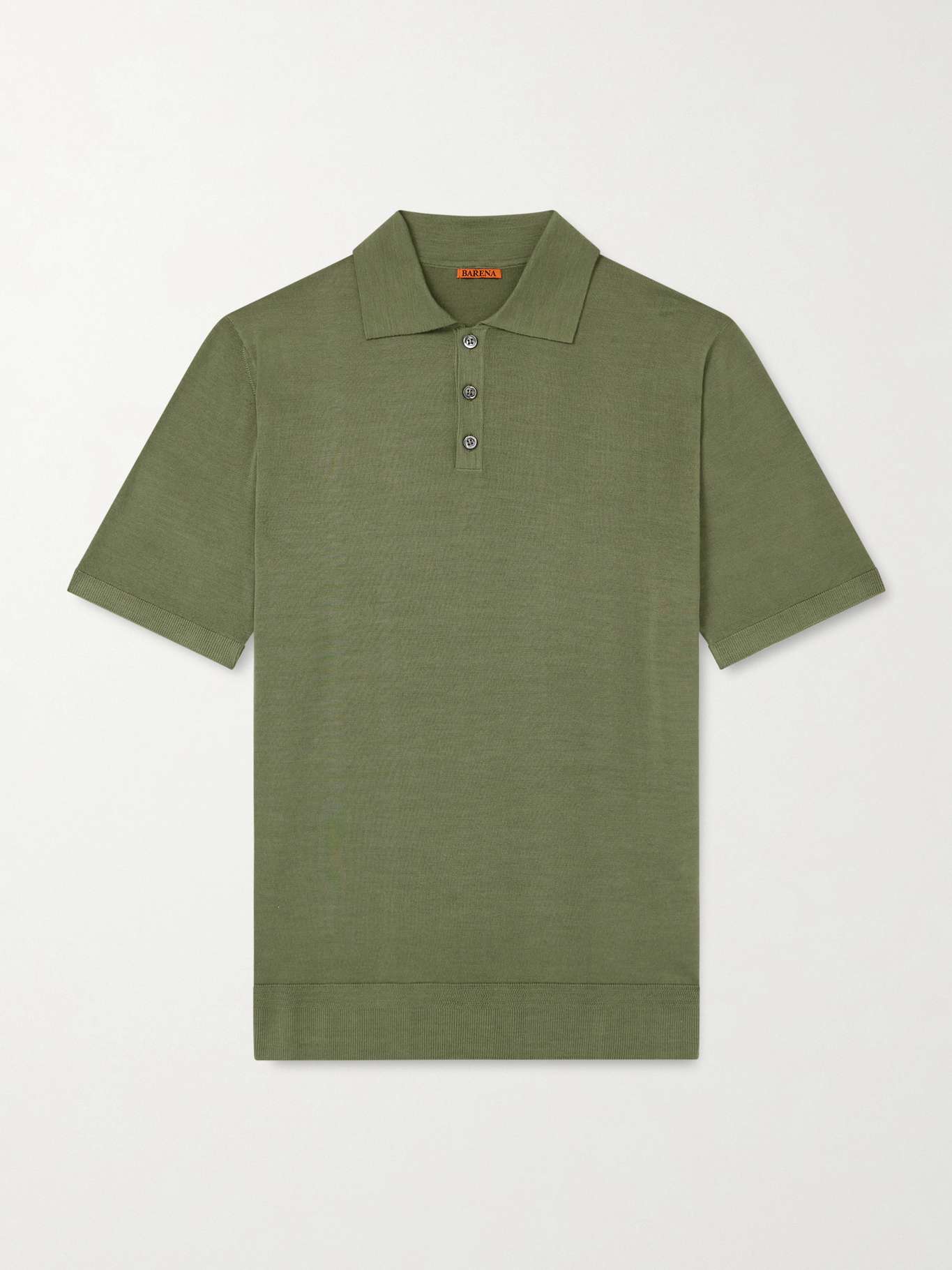 Barena's polo shirt is made from merino wool, which has been washed and dyed to create a softer handle. It has a classic three-button placket with thick ribbing at the hem.