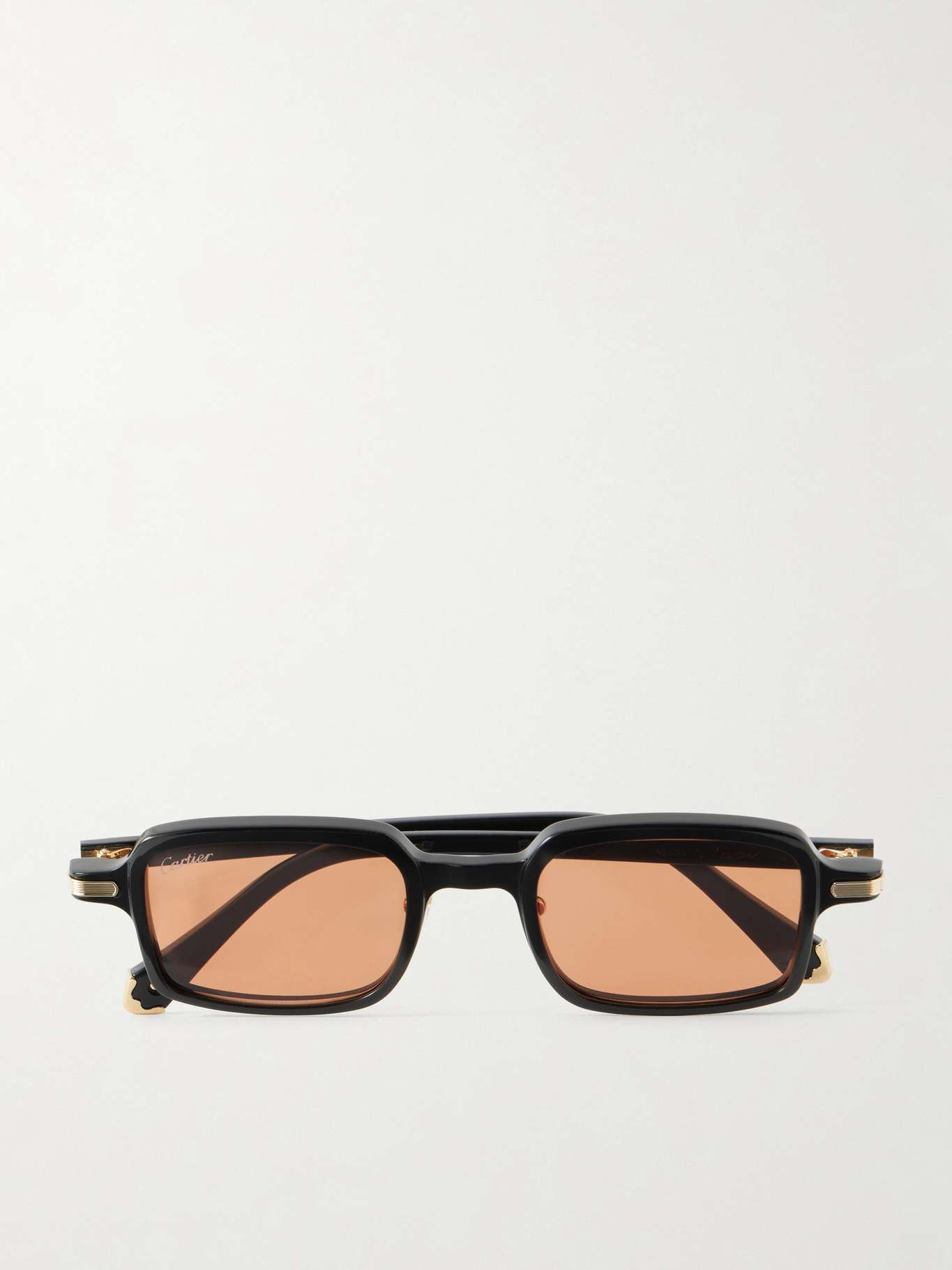 Cartier Eyewear's sunglasses have square-shaped frames made from glossy acetate. Set on slim arms, they're accented by gold-tone hardware on the hinges and the tips.