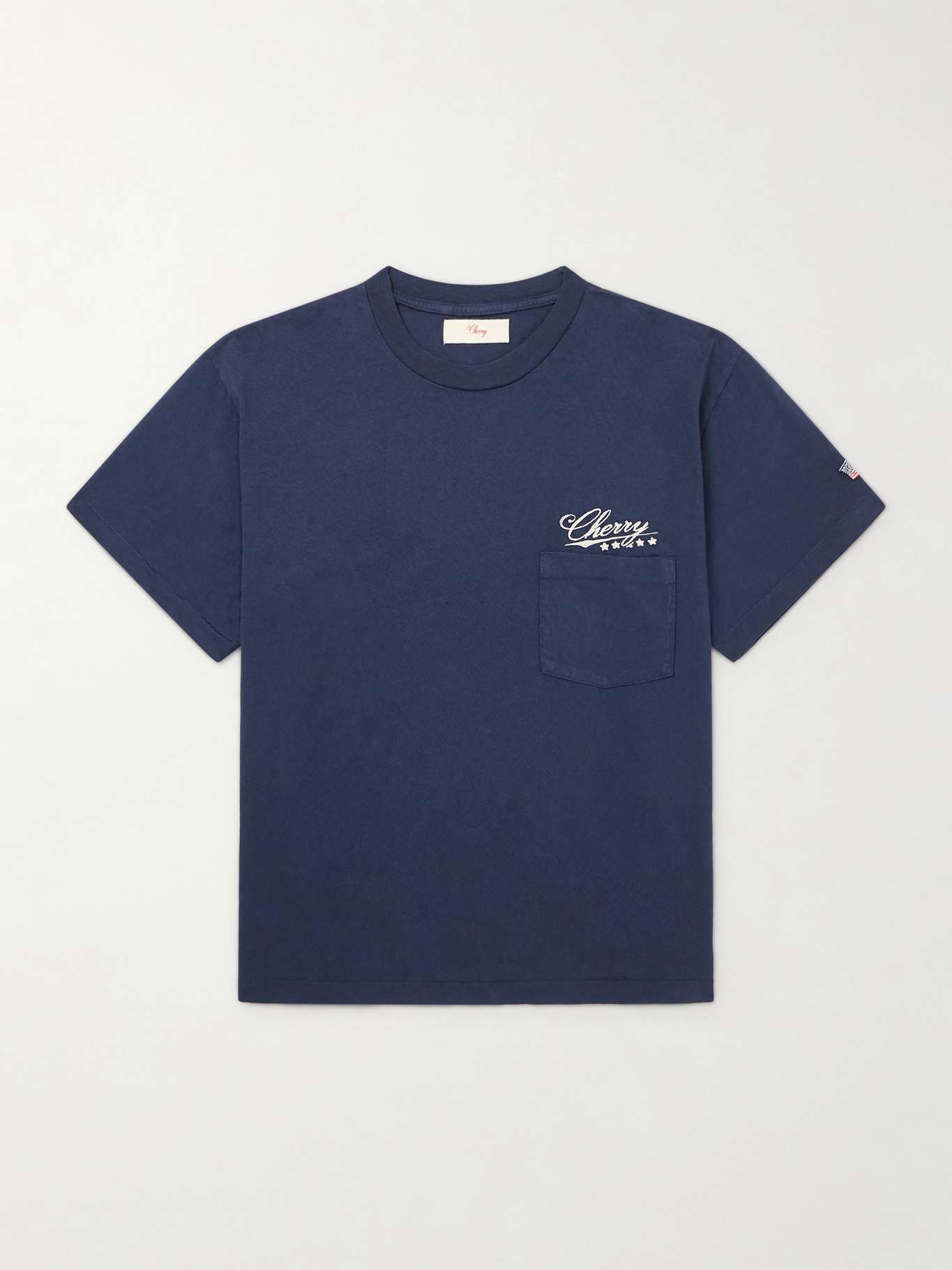 CHERRY LOS ANGELES' T-shirt is embroidered with the brand's name in elegant script. It's cut from cotton-jersey and has a front pocket and American flag on the sleeve. Layer yours over a contrasting base.