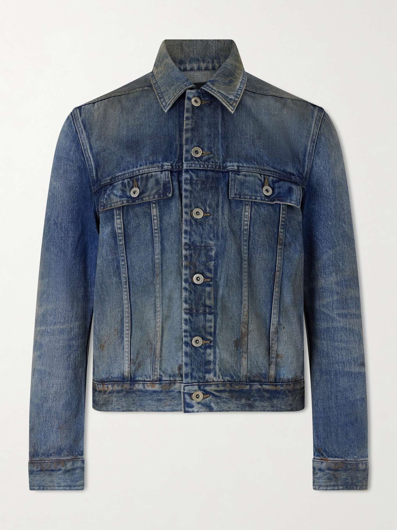 DRKSHDW by Rick Owens’ jacket is faded and whiskered for a worn-in feel. Modelled on classic trucker styles, it’s cut from Japanese denim and finished with stain-like markings that reflect the label’s subversive approach to design.