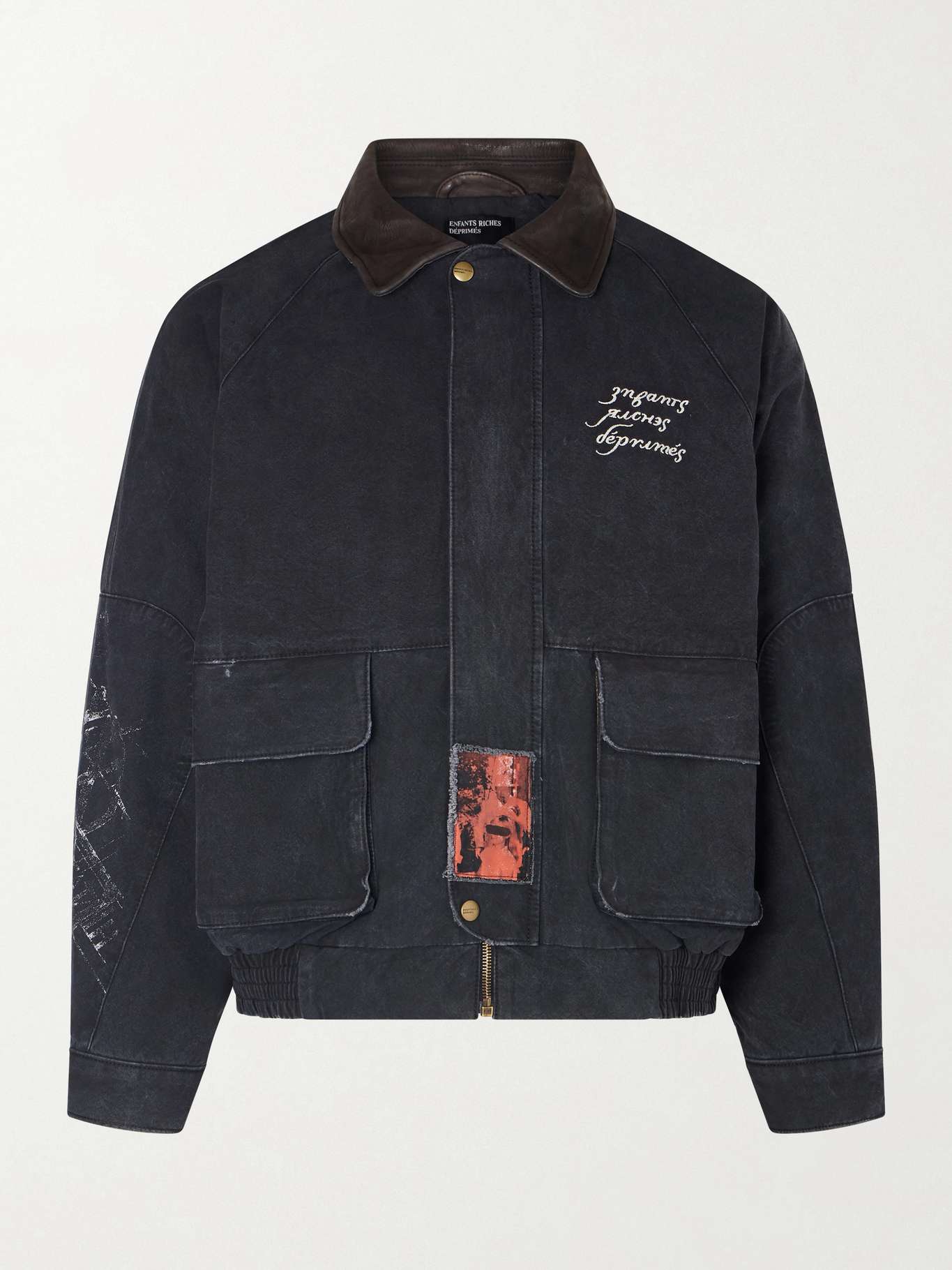 ENFANTS RICHES DÉPRIMÉS Constructivist Logo-Embroidered Leather-Trimmed Cotton-Canvas Jacket