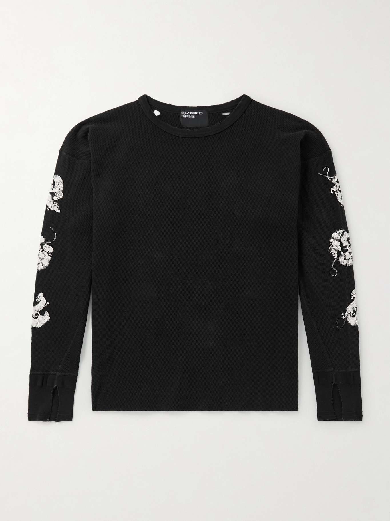 Enfants Riches Déprimés' T-shirt is modelled on Japanese military thermals. It's cut from textured cotton with a row of rats printed on each sleeve and is properly distressed with rips, holes and a raw hem.