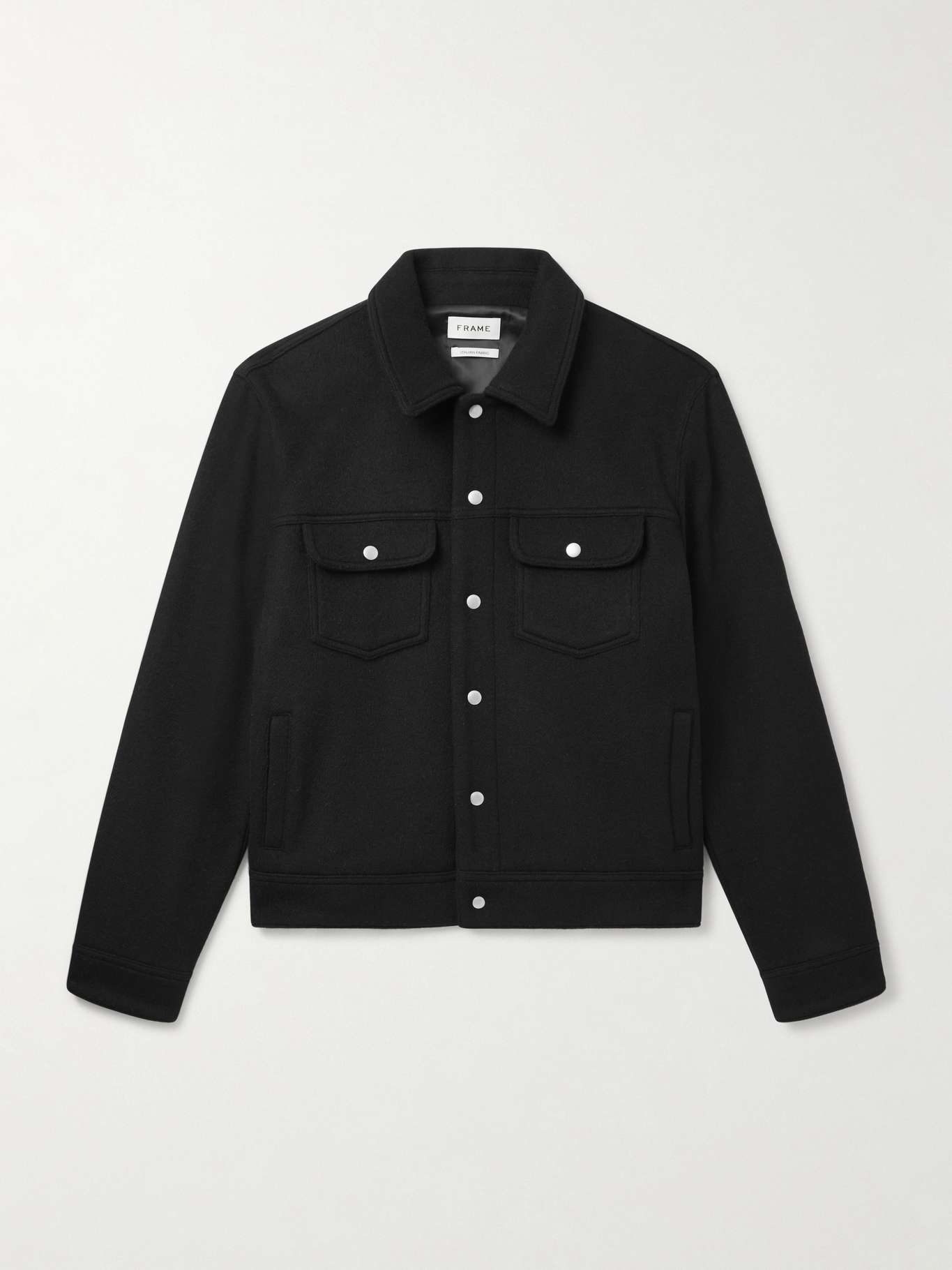 Unlike your typical trucker jacket, FRAME's version is woven from a wool-blend, so it's a little warmer than you'd expect. It's cut for a boxy fit, with a squared collar and a slightly cropped hem, and has polished, silver-tone buttons at the front and on the chest.