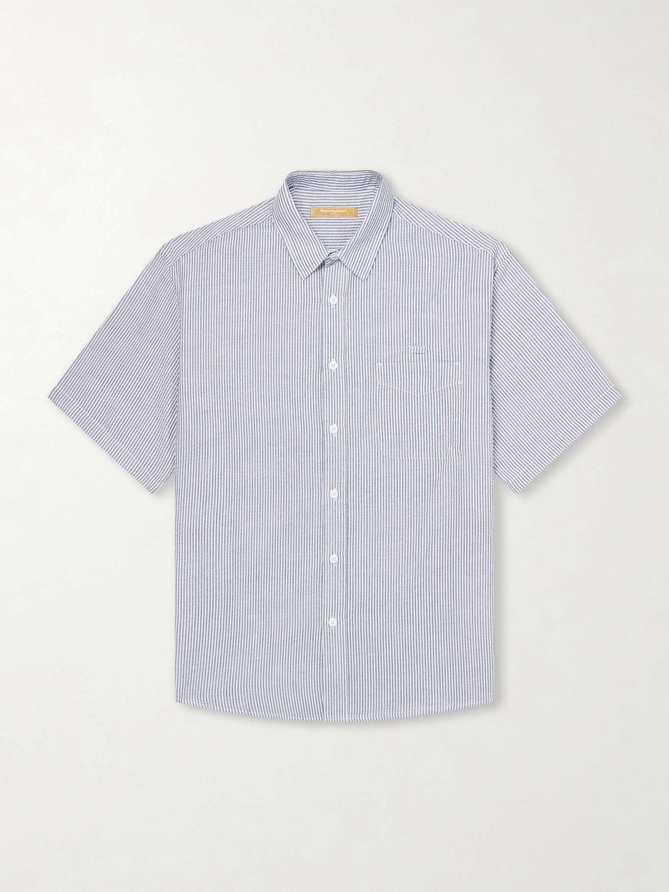 FrizmWORKS focuses on fabric to shape its relaxed silhouettes. This shirt is made from striped cotton-blend seersucker, the puckered texture adding breathability and visual depth.