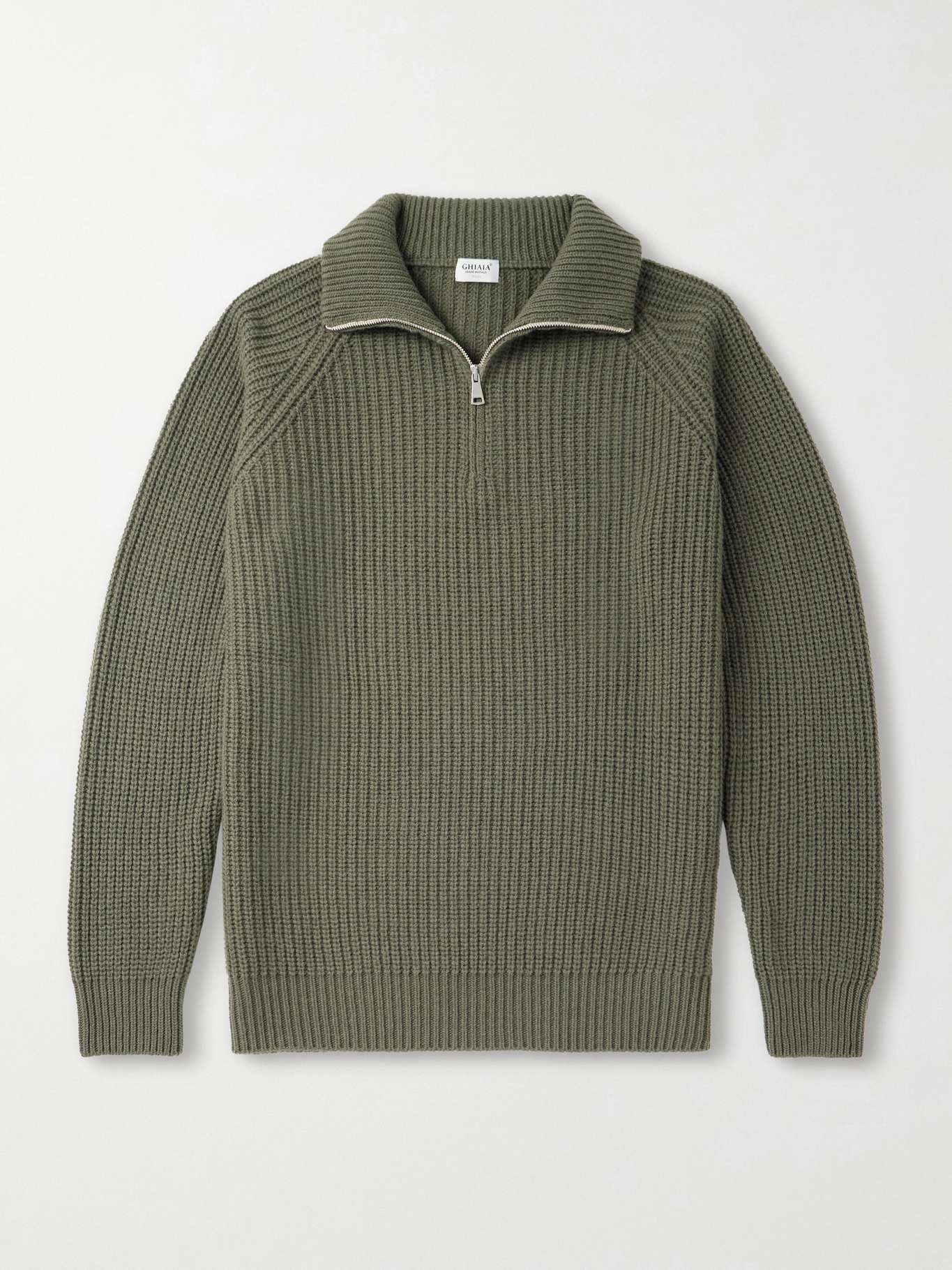 GHIAIA CASHMERE Ribbed Wool Half-Zip Sweater