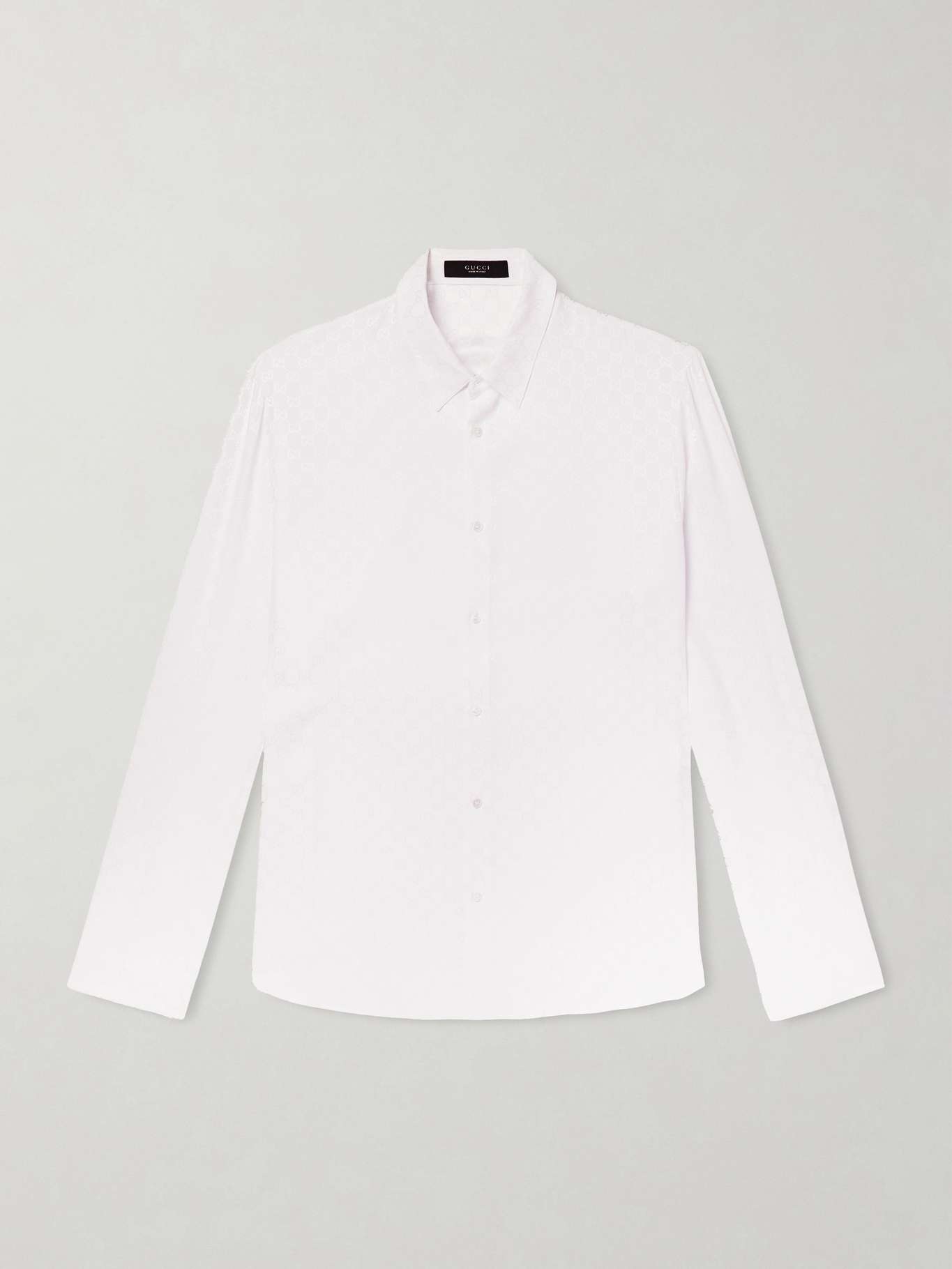 Gucci's shirt is jacquard-woven with its 'GG' monogram in a combination of lustrous and matte silk threads. Made in Italy, it's finished with a classic collar and barrel cuffs.