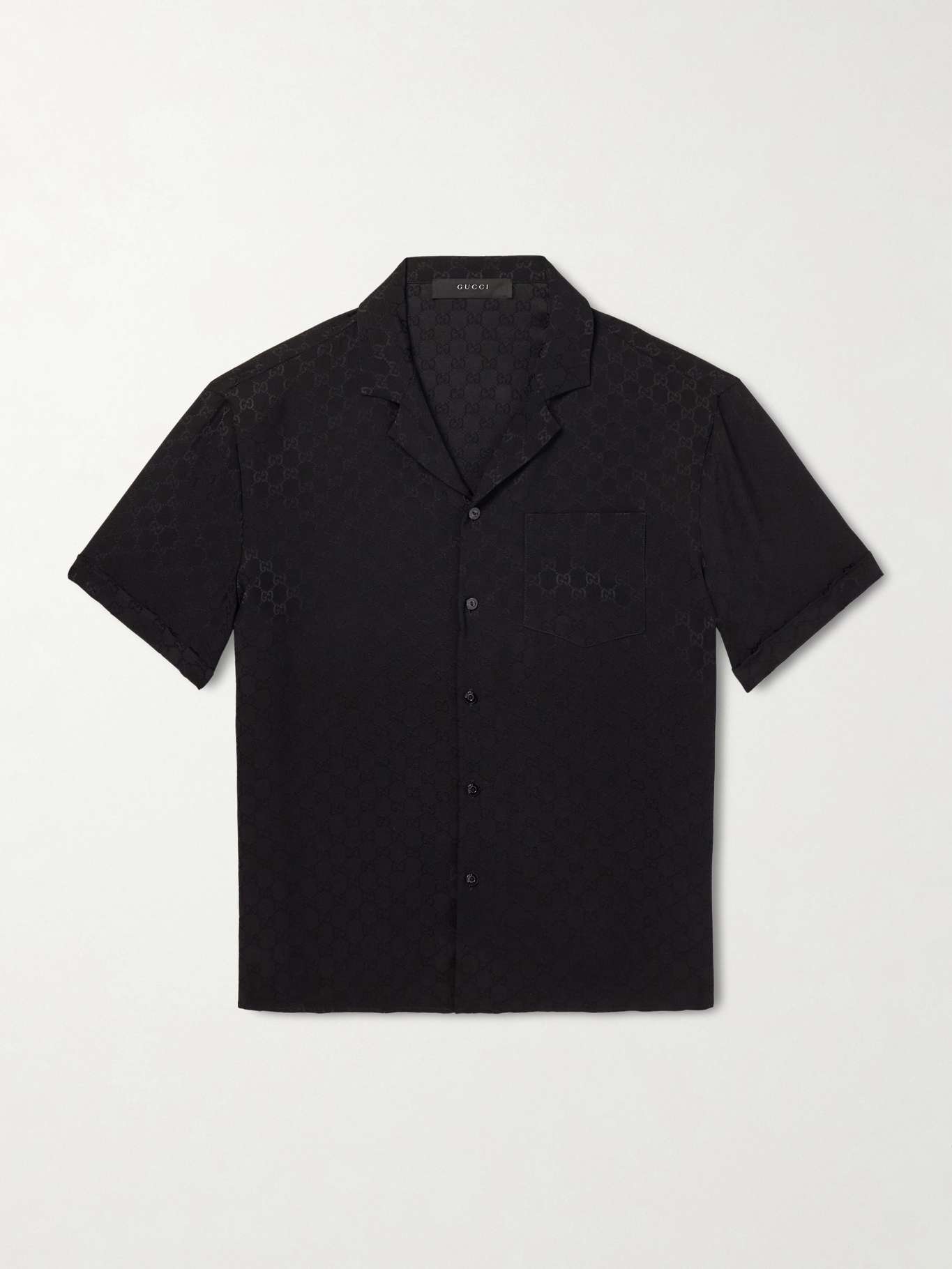 GUCCI Slim-Fit Camp-Collar Logo-Jacquard Silk Shirt