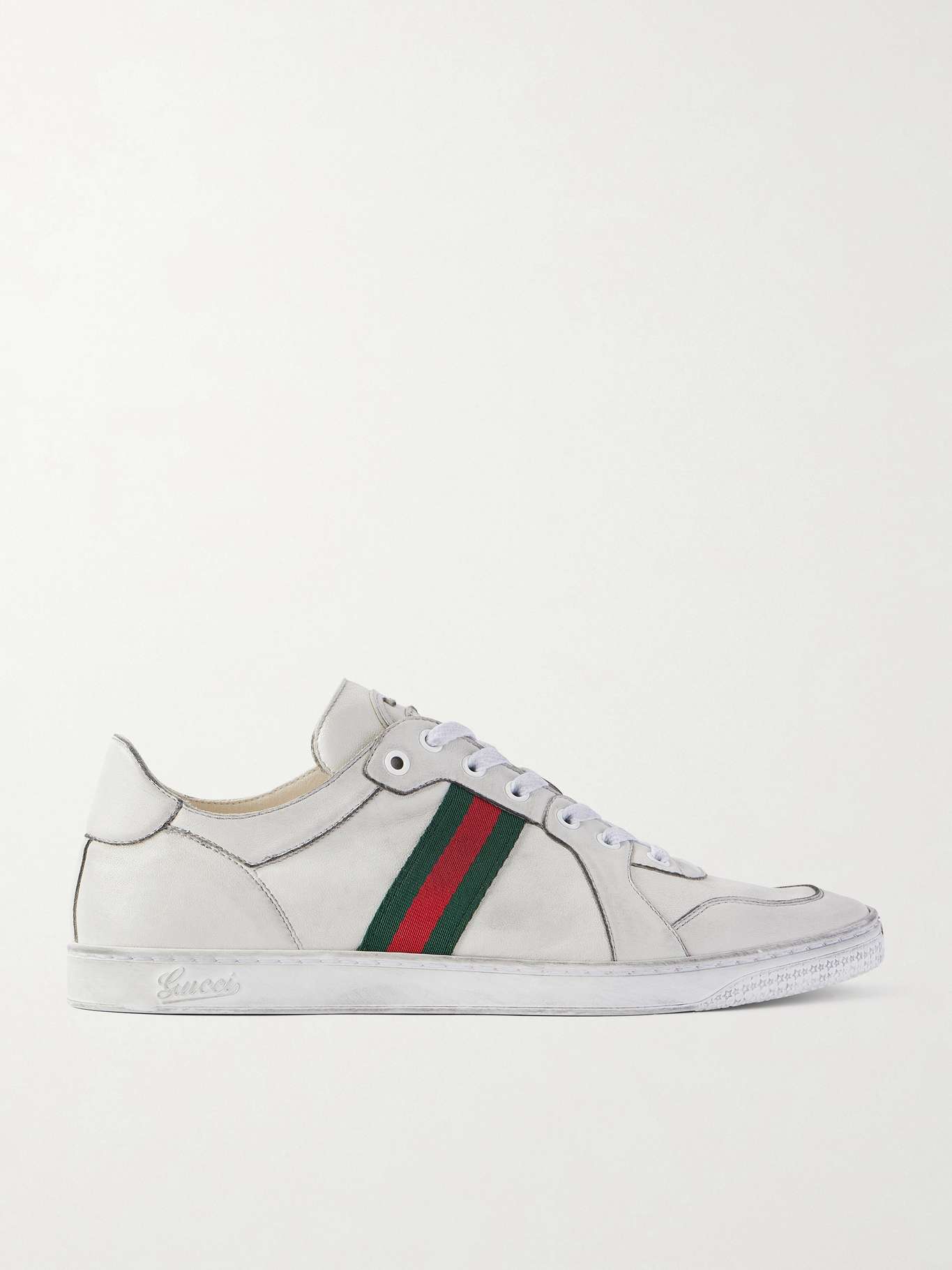 GUCCI Distressed Webbing-Trimmed Leather Sneakers