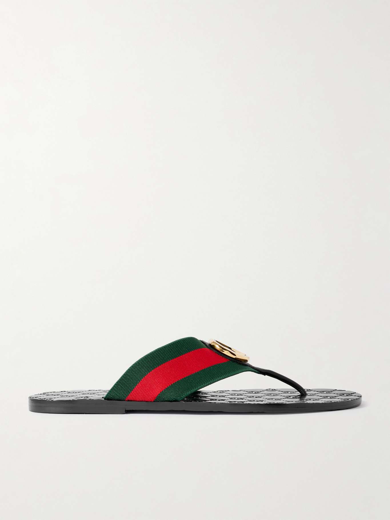 GUCCI Riviera Logo-Embellished Striped Webbing-Trimmed Leather Sandals