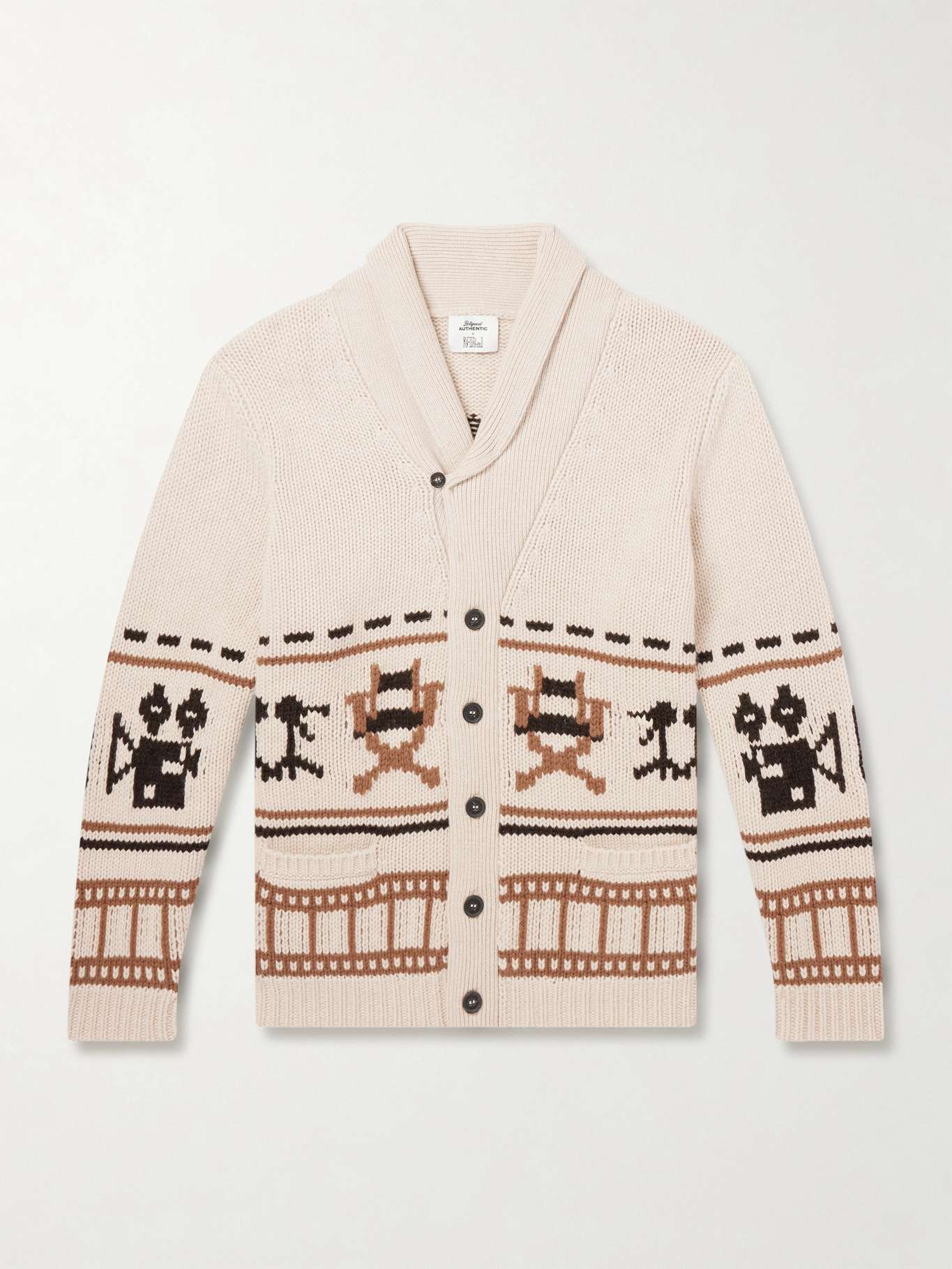Hollywood Authentic teams up with N.Peal to reinterpret heritage knitwear through a modern lens. This shawl-lapel cardigan is made from organic Mongolian cashmere and features cinematic motifs including a film roll, camera and director's chair. Wear yours with pleated trousers and simple T-shirt.