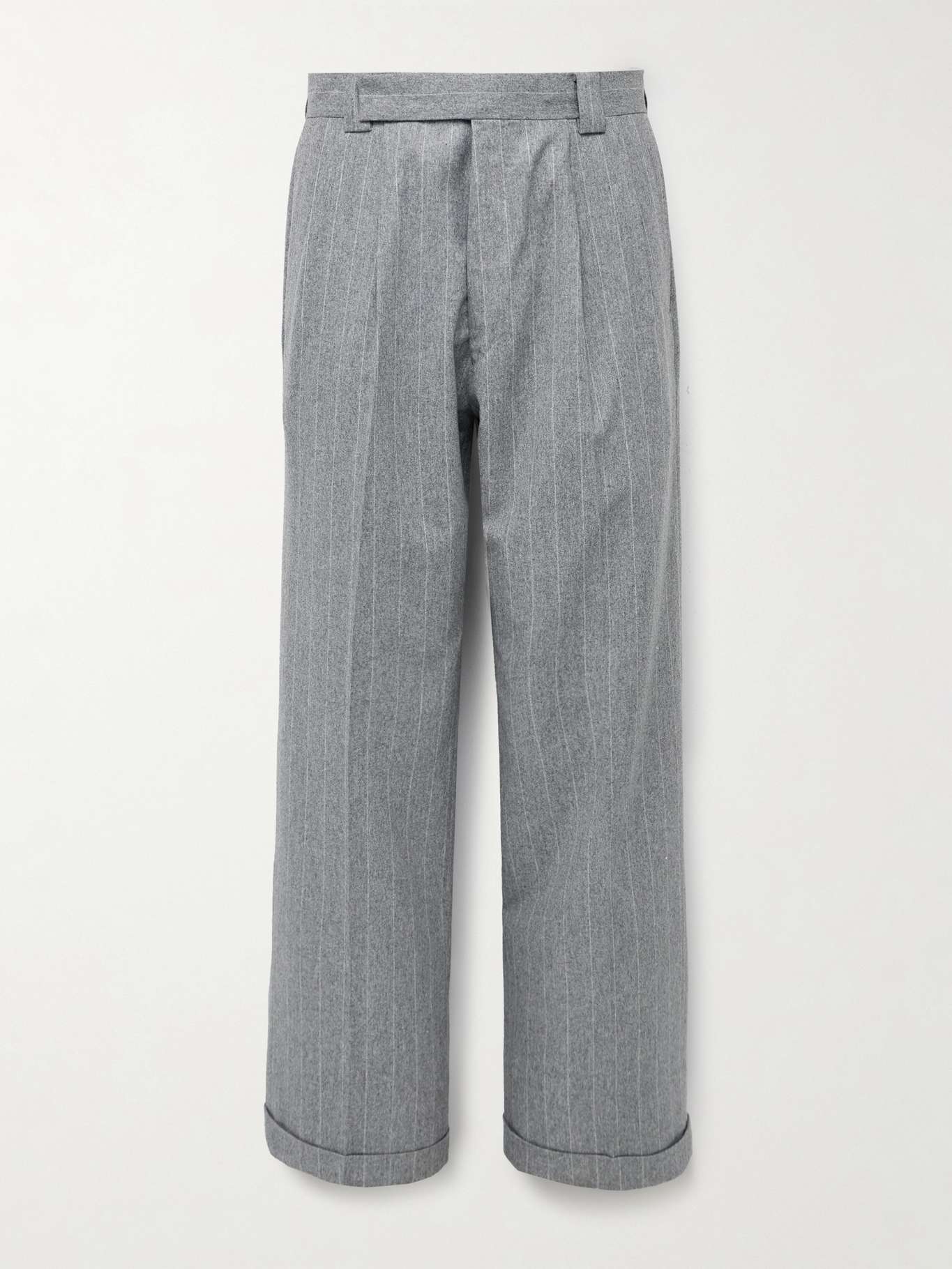 KAPTAIN SUNSHINE Tapered Pleated Striped Wool-Flannel Suit Trousers
