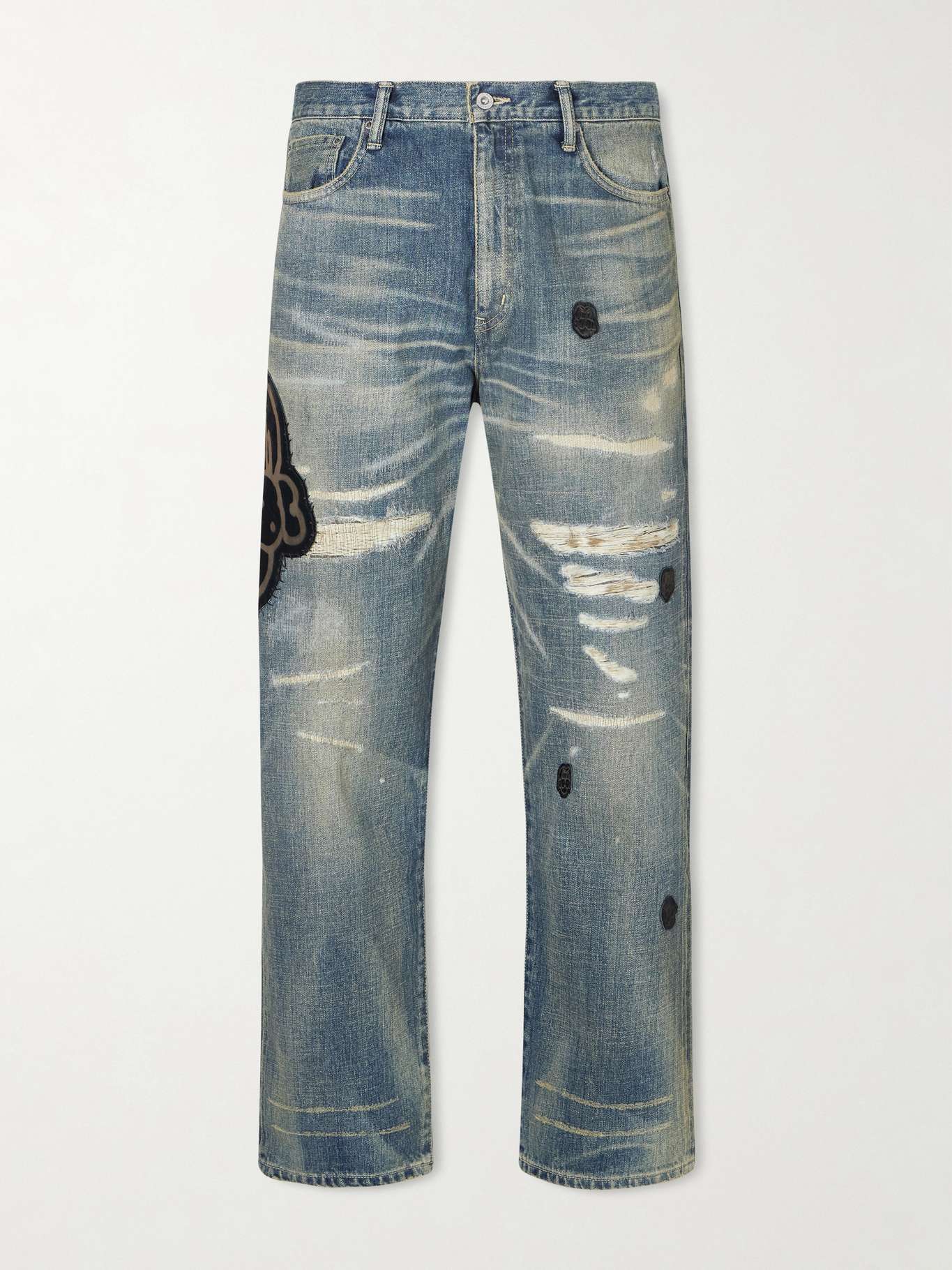 NEIGHBORHOOD + Chito Savage Appliquéd Distressed Straight-Leg Jeans