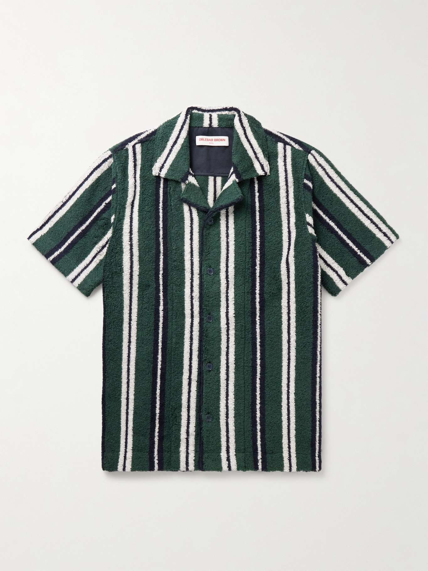 ORLEBAR BROWN Criffith Camp-Collar Striped Cotton-Blend Terry Shirt