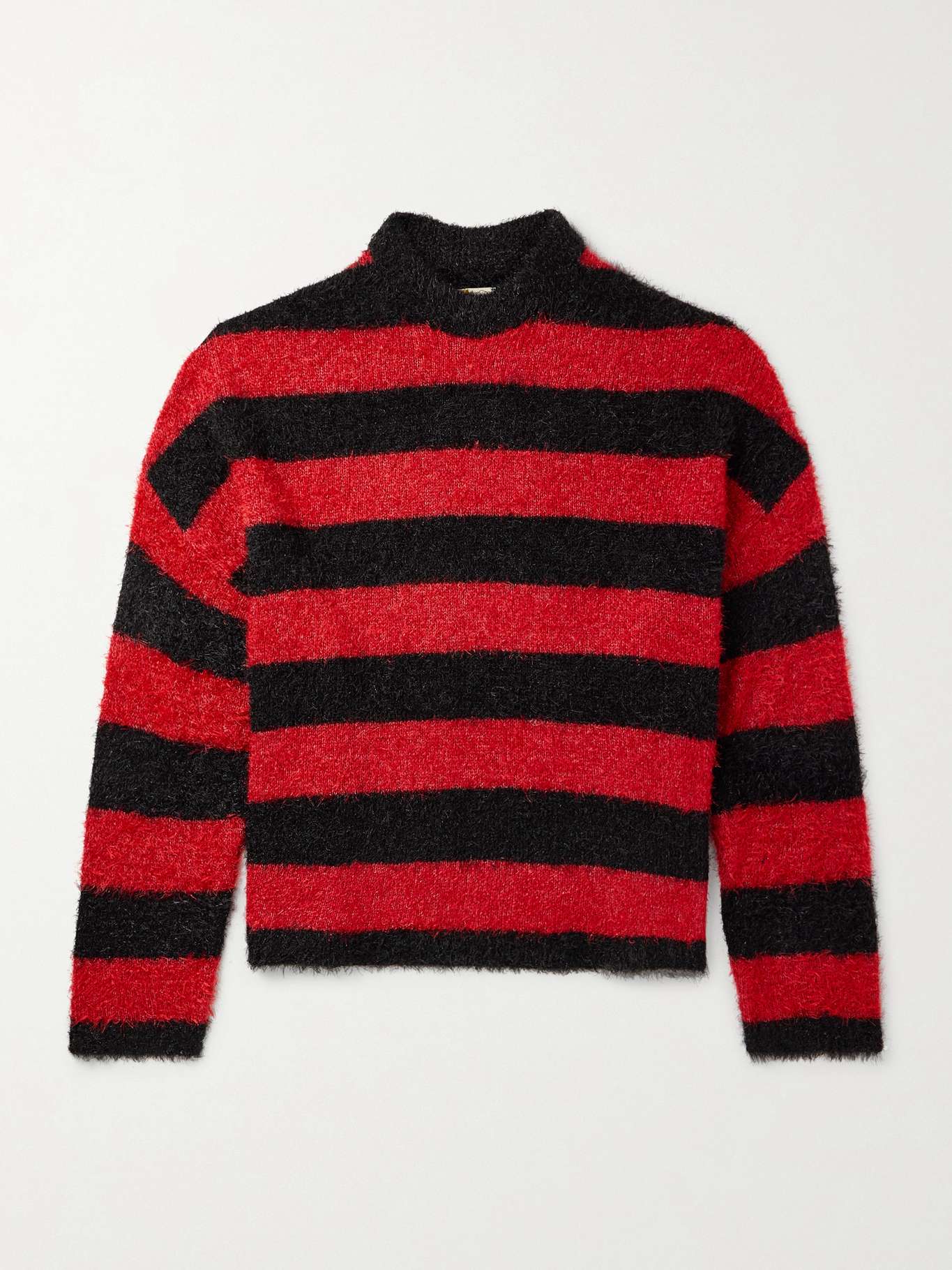 SAINT Mxxxxxx's sweater is knitted with glittered threads that catch the light from every angle. The black and red stripes will stand out against the rest of your outfit, be it a bomber and cargo pants or a trucker jacket and jeans.
