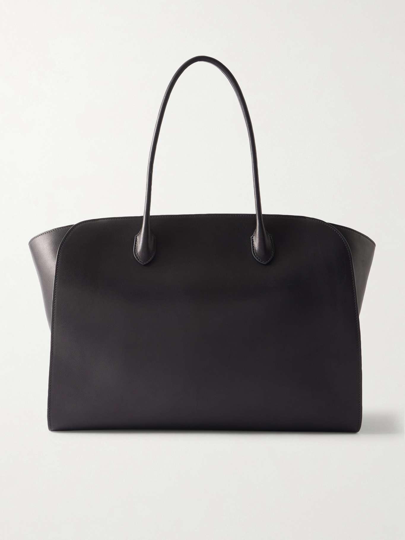 The Row's 'Marlo 17' structured tote bag features clean lines, extended sides and rounded handles. It's been made in France from black leather and has an internal zipped pocket to tuck your cards and phone.