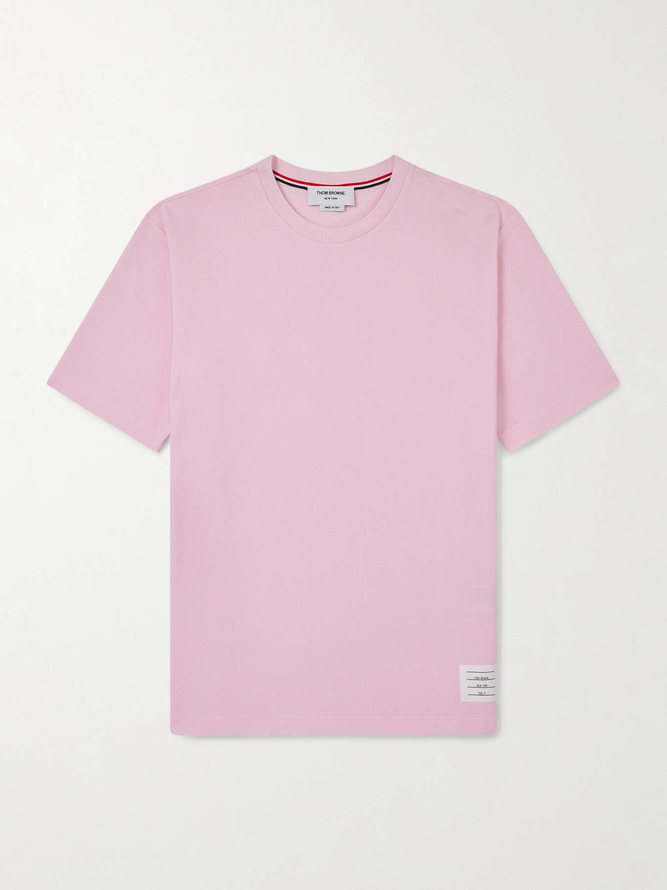 THOM BROWNE Logo-Appliquéd Striped Cotton-Piqué T-Shirt