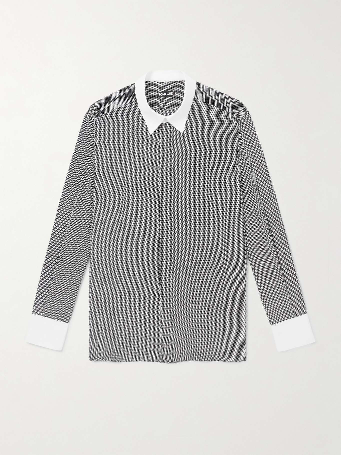 TOM FORD's shirt is defined by its striking geometric print and contrasting collar and cuffs. It's been made in Italy from lustrous silk and has an elegant drape through the body.