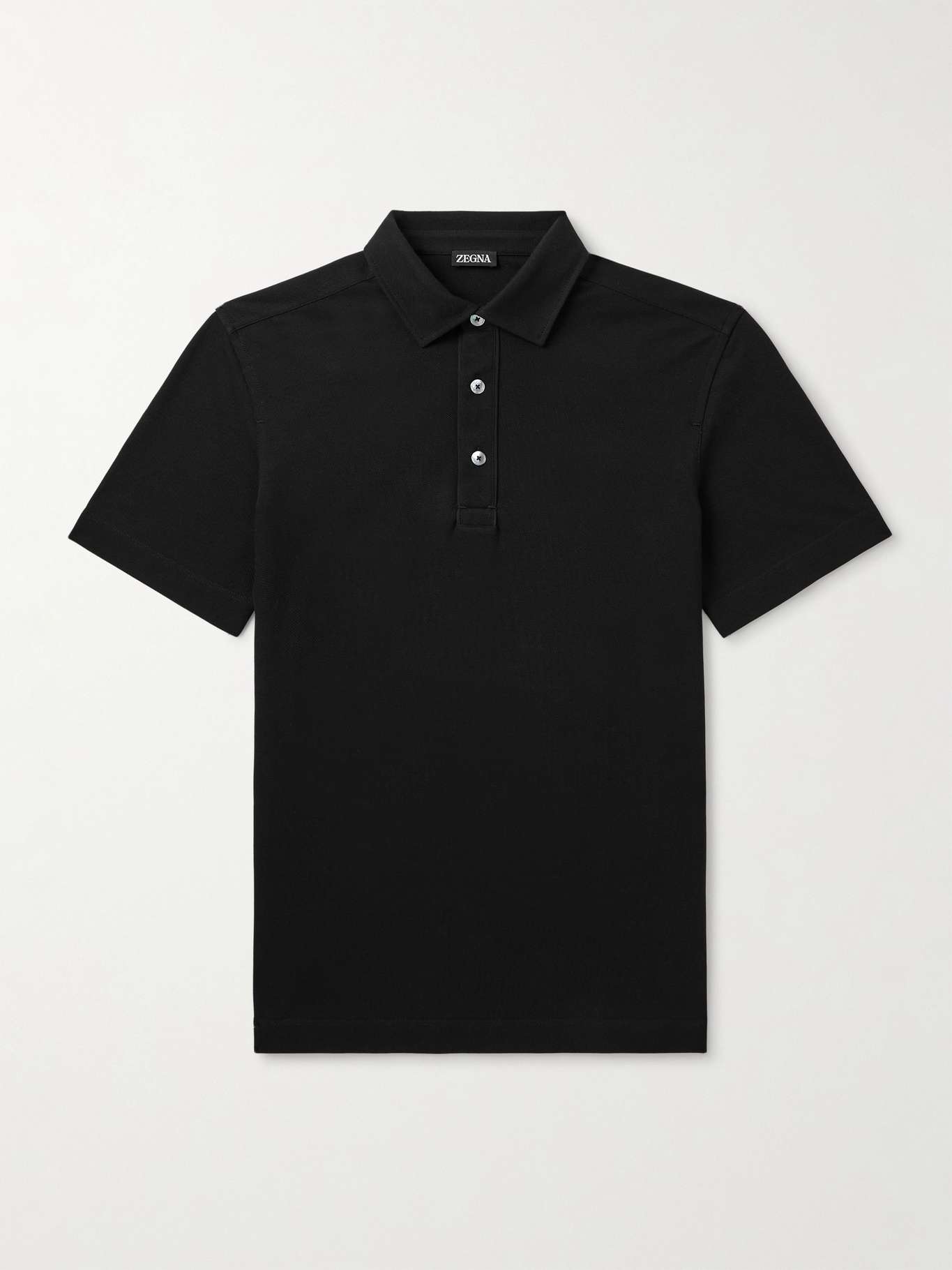 ZEGNA Leather-Trimmed Cotton-Piqué Polo Shirt