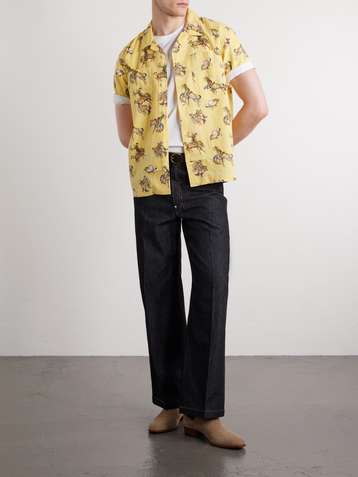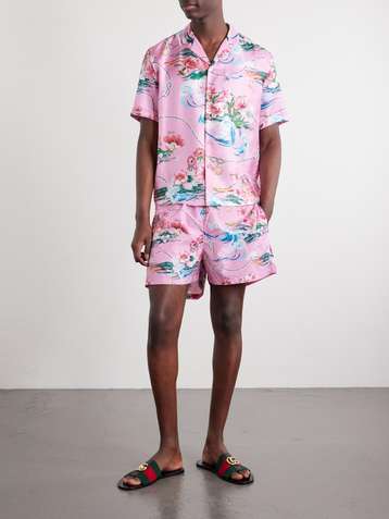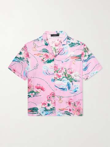 Printed Camp-Collar Silk-Twill Shirt