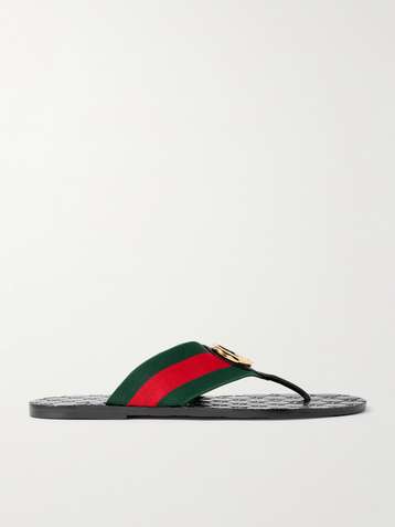 Riviera Logo-Embellished Striped Webbing-Trimmed Leather Sandals