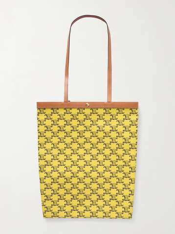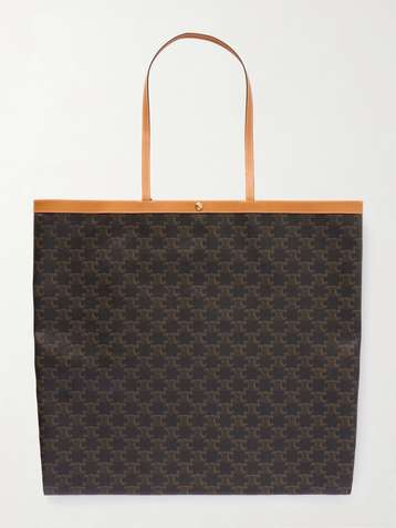 Triomphe Leather-Trimmed Logo-Print Coated-Canvas Tote Bag