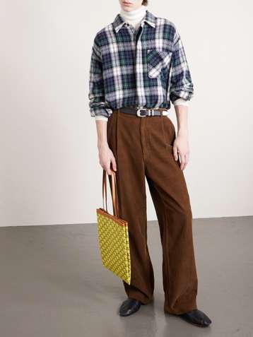 Leather-Trimmed Logo-Embroidered Wool Tote Bag