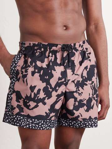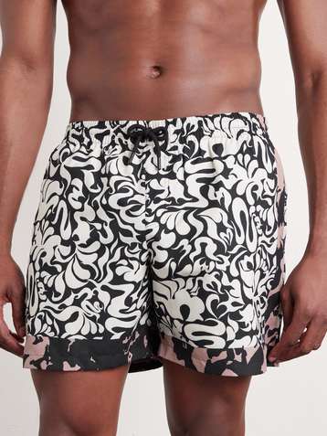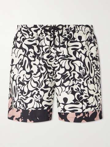 Straight-Leg Mid-Length Printed Swim Shorts