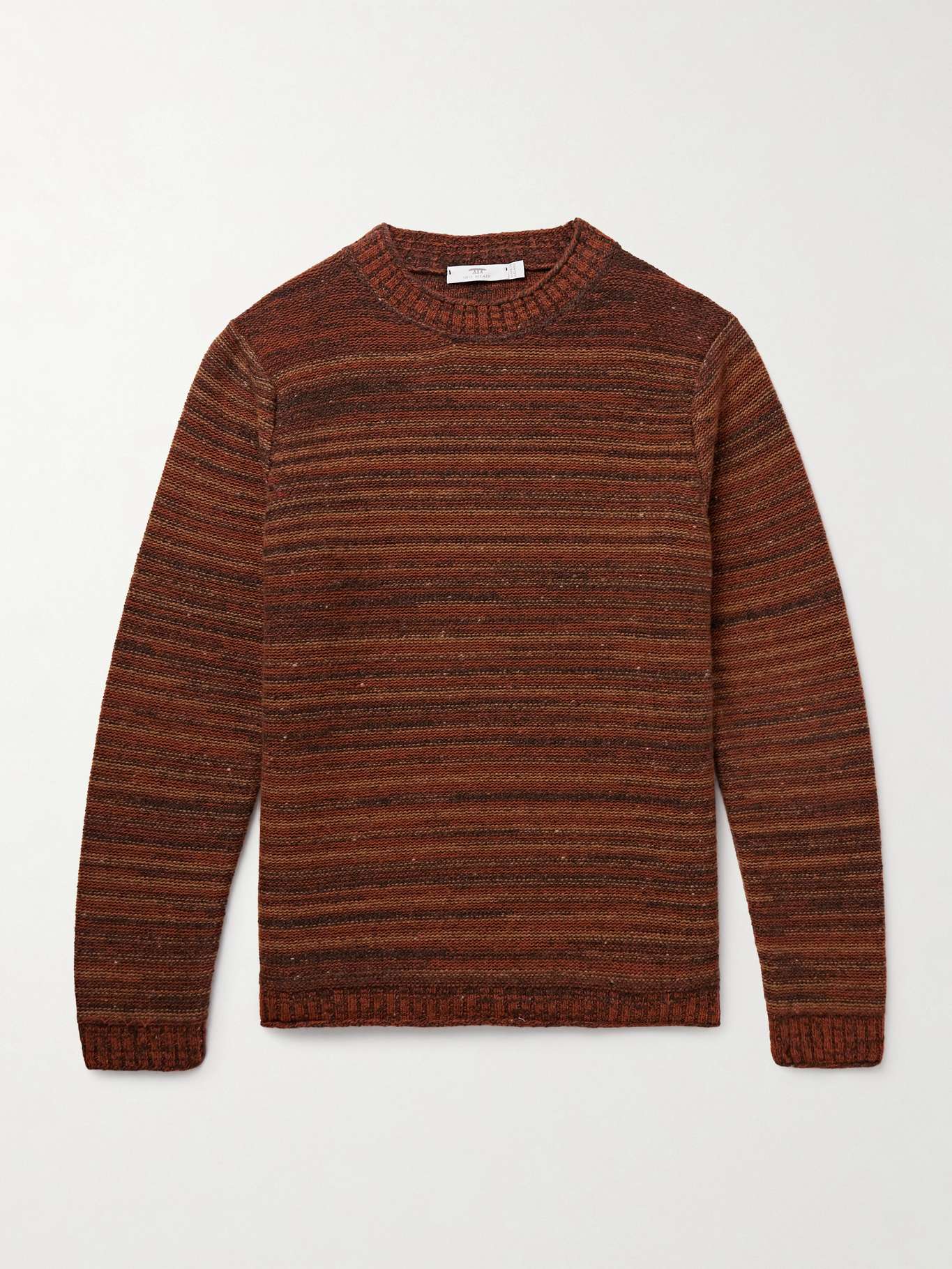 Inis Meáin's clothing reflects the Aran Islands' centuries-old knitting techniques, which have long been influenced by the landscape's "turbulent seas, wild flora and labyrinths of stone walls." This striped sweater is spun from a merino wool and cashmere-blend and has a subtle flecked finish.