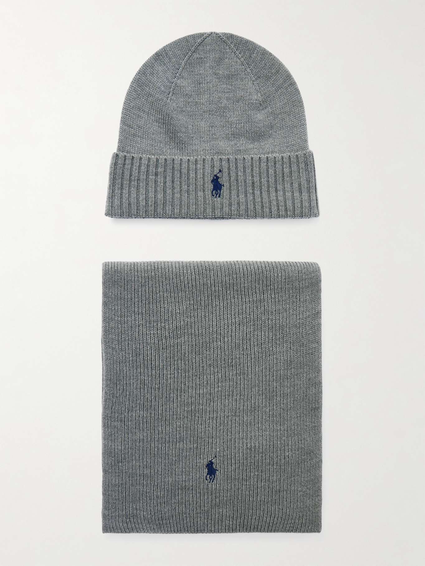 POLO RALPH LAUREN Logo-Embroidered Ribbed Wool Beanie and Scarf Set