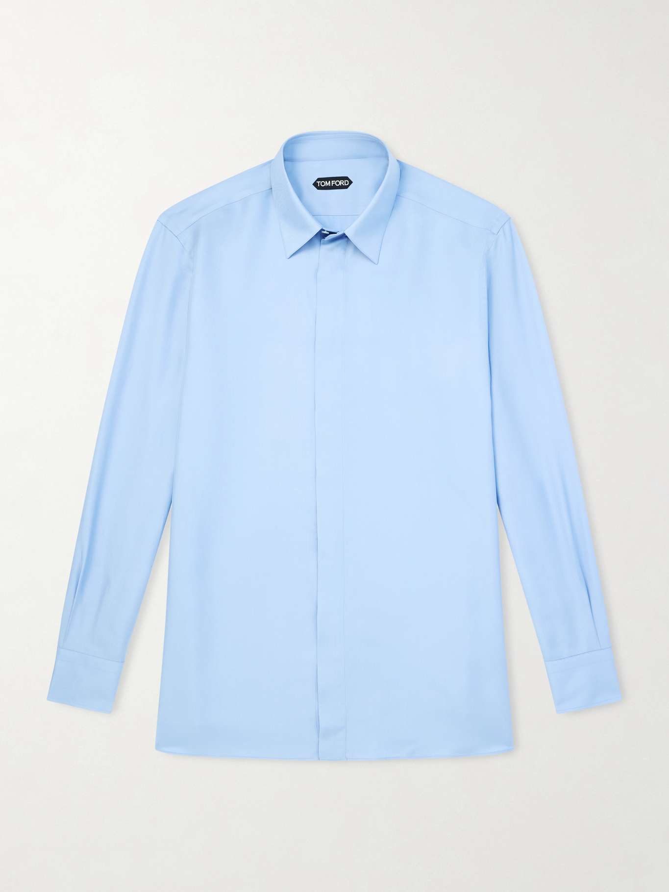 TOM FORD's twill shirt has a fluid drape, so it hangs effortlessly. It has a point collar and a hidden placket to keep the focus on the relaxed shape.