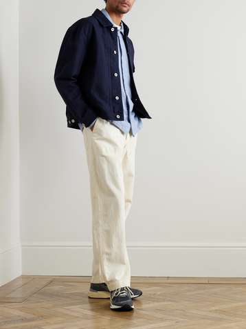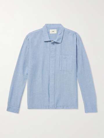 Button-Down Collar Striped Cotton and Linen-Blend Shirt