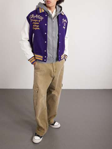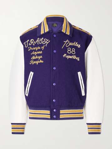 Cropped Leather-Trimmed Melton Wool Letter Jacket