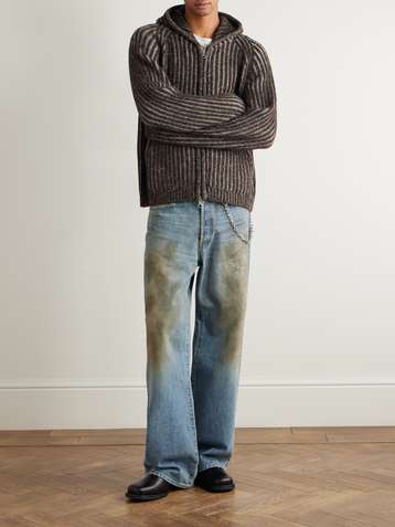 Popover Distressed Striped Cotton and Linen-Blend Sweater