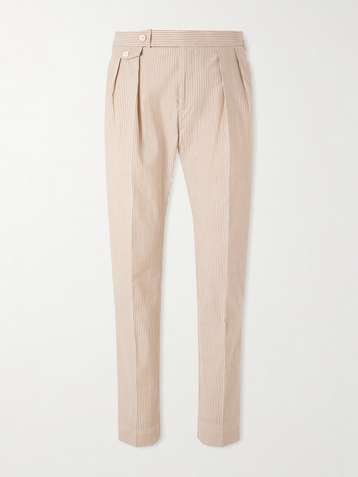 Straight-Leg Pleated Striped Cotton-Seersucker Suit Trousers