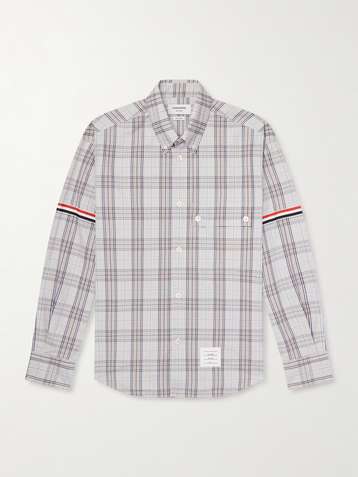 Oversized Button-Down Collar Checked Cotton-Poplin Shirt