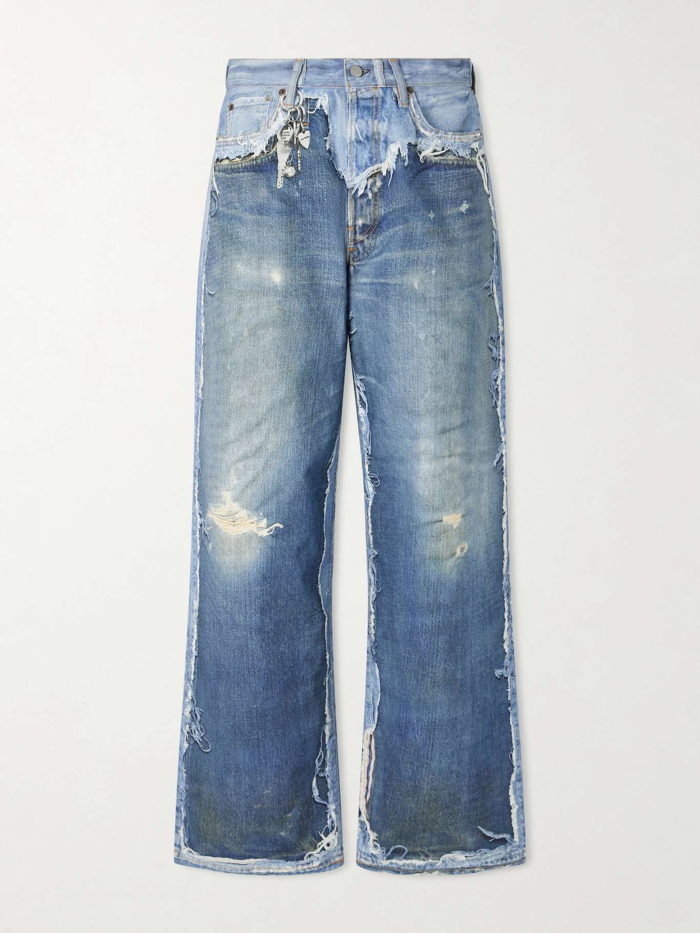 From afar, Acne Studios' '1981' jeans appear heavily distressed, but a closer look reveals it's the illusion of the trompe-l'œil print. They're cut for a baggy, wide-leg fit from certified organic denim.