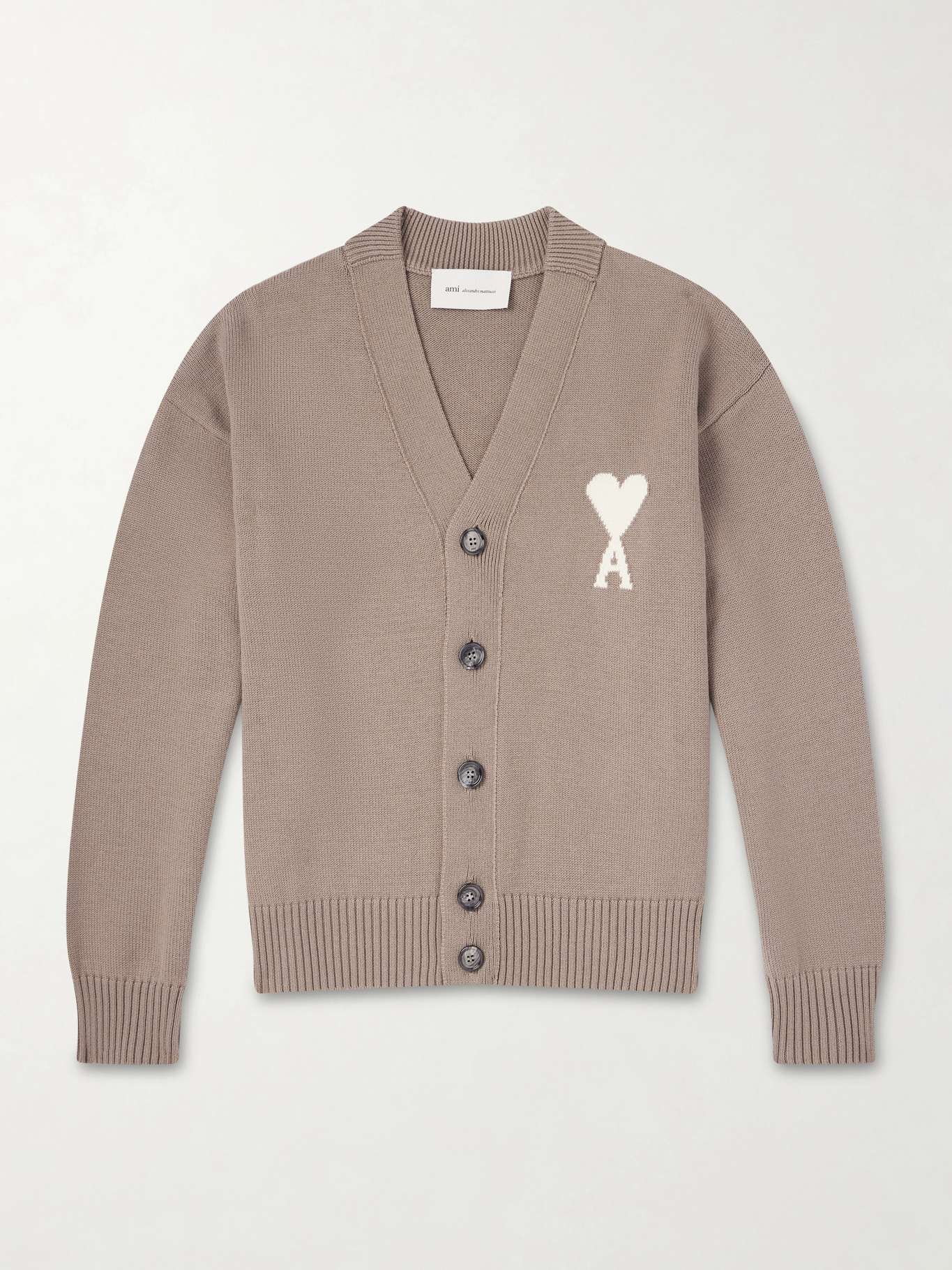 AMI PARIS Logo-Intarsia Virgin Wool and Cotton-Blend Cardigan