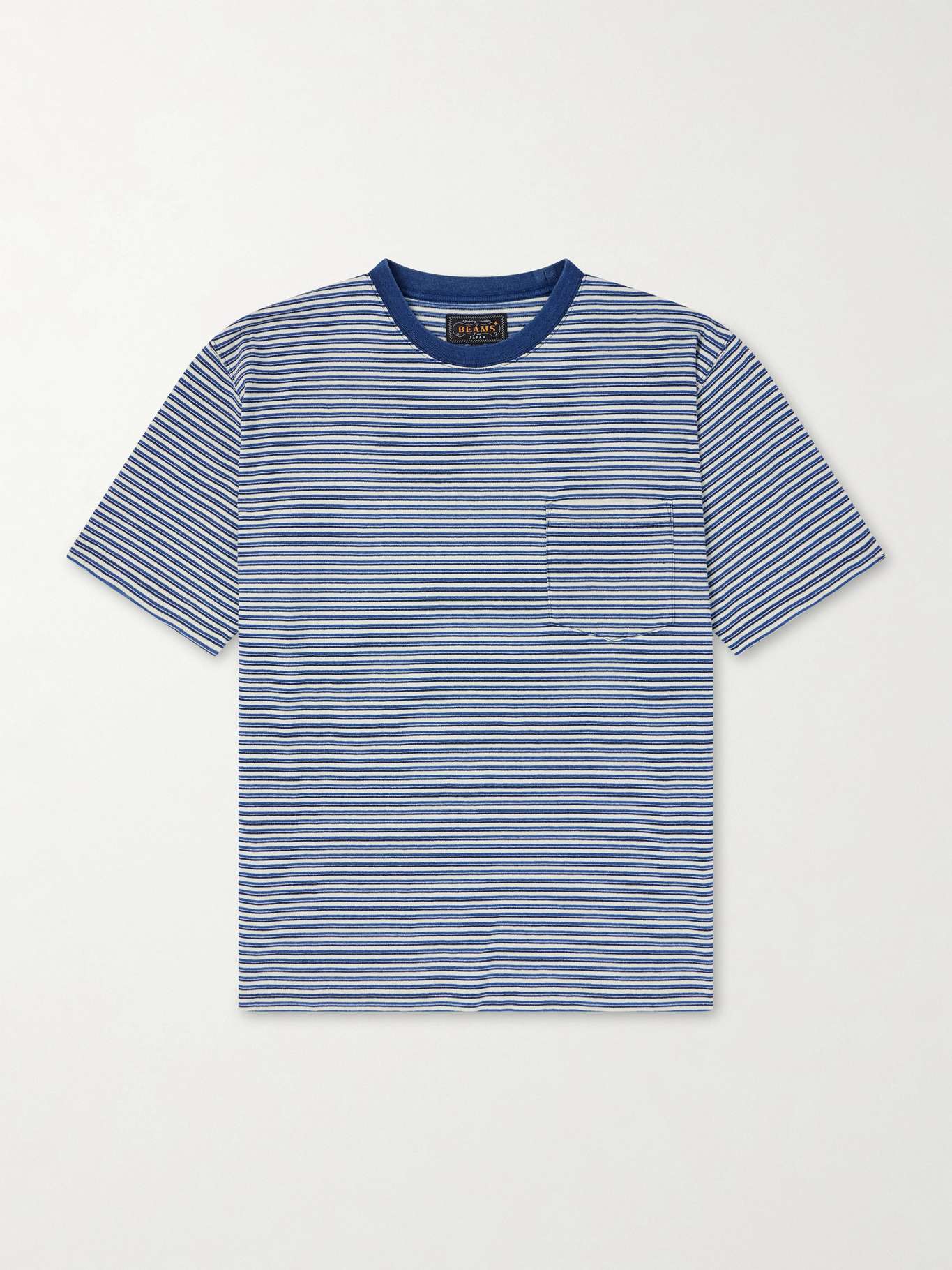 Knitted using two types of threads dyed with real indigo, Beams Plus' striped cotton-jersey T-shirt will fade gracefully over time, much like denim. This short-sleeve staple comes in a regular fit and features a chest patch pocket.